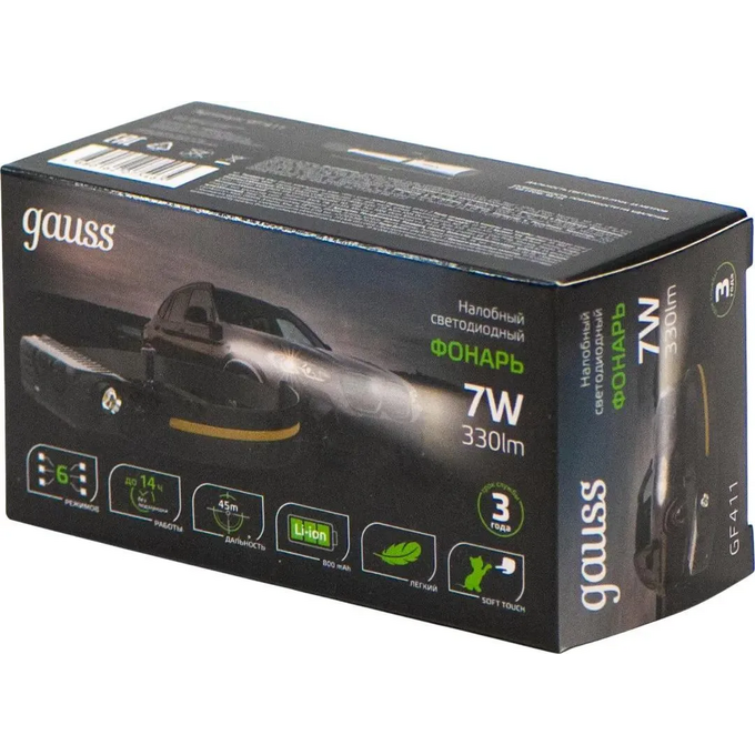 Фонарь налобный Gauss GFL411 черный 7Вт лам.:светодиод. встроенный аккумулятор (GF411)
