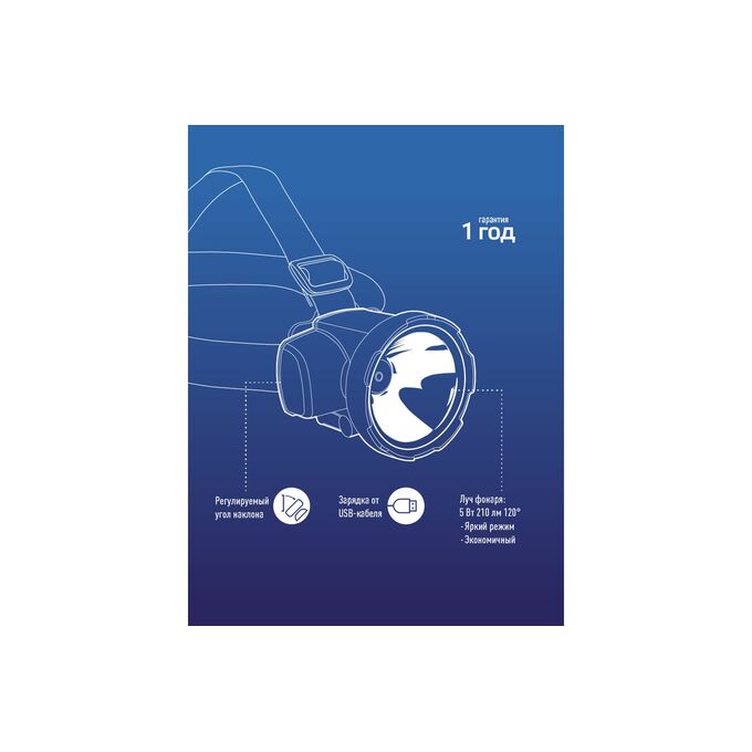 Фонарь налобный светодиодный аккумуляторный КОСМОС KOCAccuH5WLED H5W, 2 режима, 5W LED, 2ah, зарядка от USB
