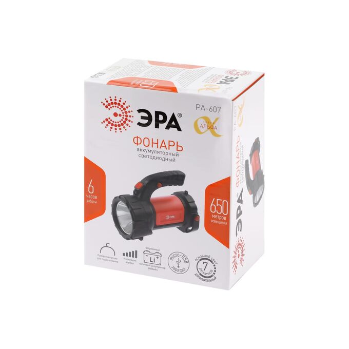Преимущества ЭРА PA-607 АЛЬФА прожектор, 8 Вт, литий, поворотная ручка Б0052745