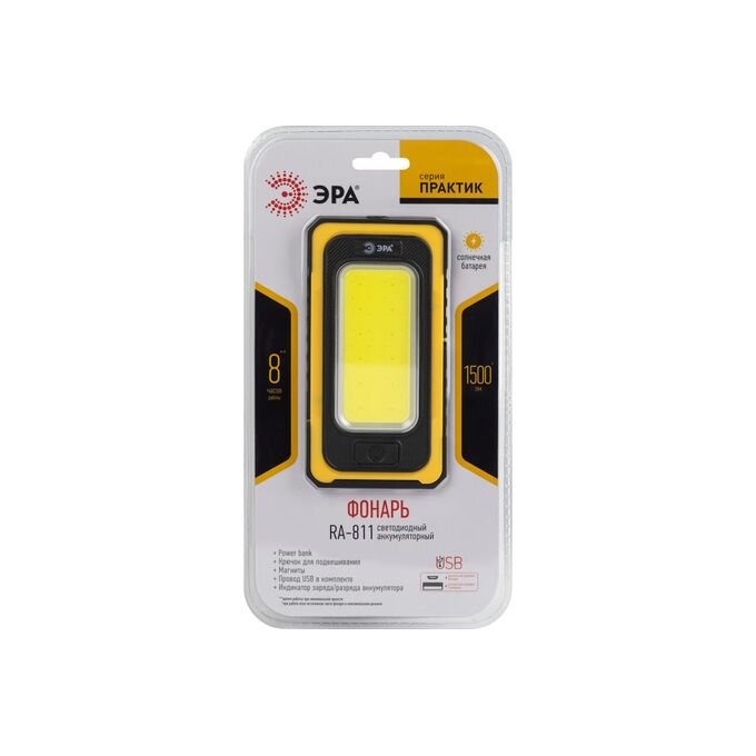 Светодиодный фонарь ЭРА Рабочие Практик RA-811 ручной, аккумуляторный, 15 Вт COB, powerbank, солнечная батарея, магнит, Б0054472 входит в популярную серию ЭРА Практик, созданную специально для представителей рабочих профессий: строителей, монтажников, ремонтников, сантехников, электриков.