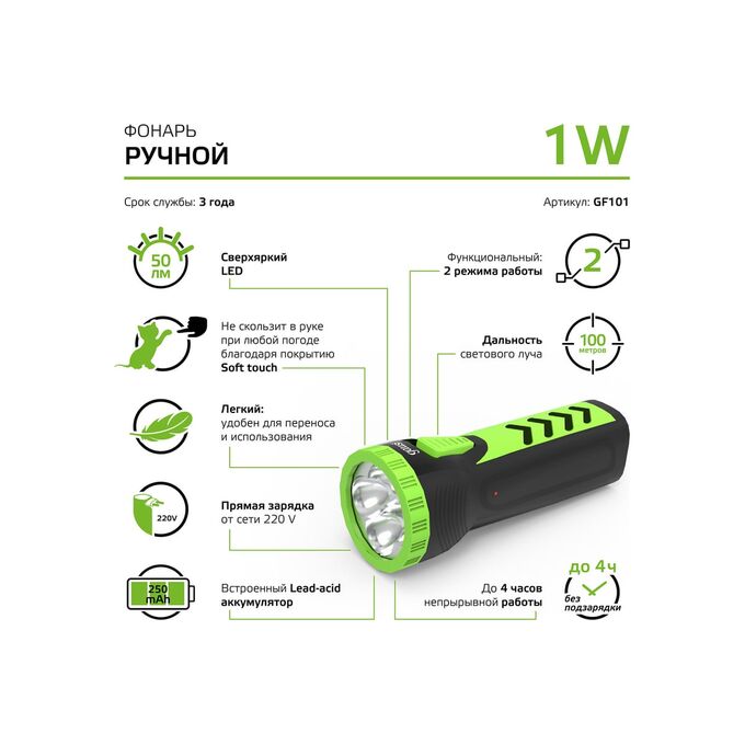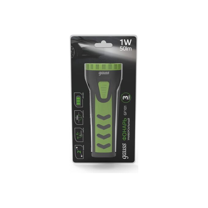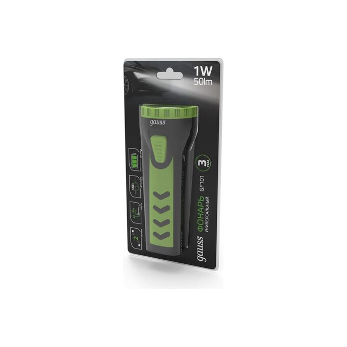Фонарь ручной Gauss GFL101 черный/зеленый 1Вт лам.:светодиод. (GF101)