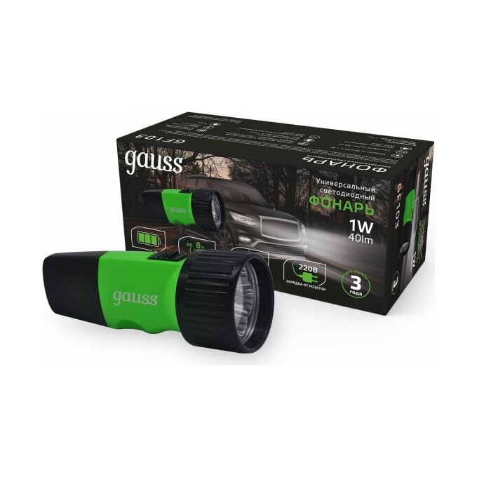 Фонарь ручной Gauss GFL103 черный 1Вт лам. светодиод.