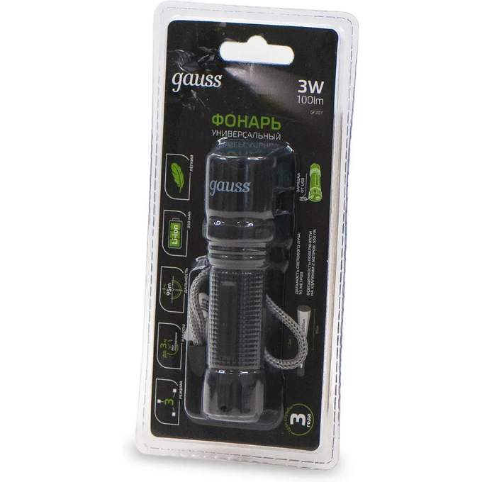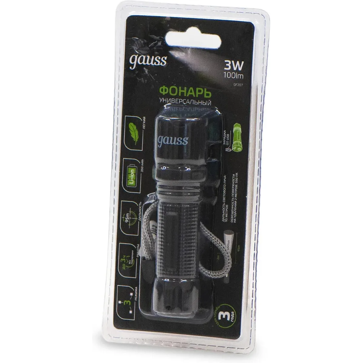 Фонарь ручной Gauss GFL207 черный 3Вт лам.:светодиод. встроенный аккумулятор (GF207)