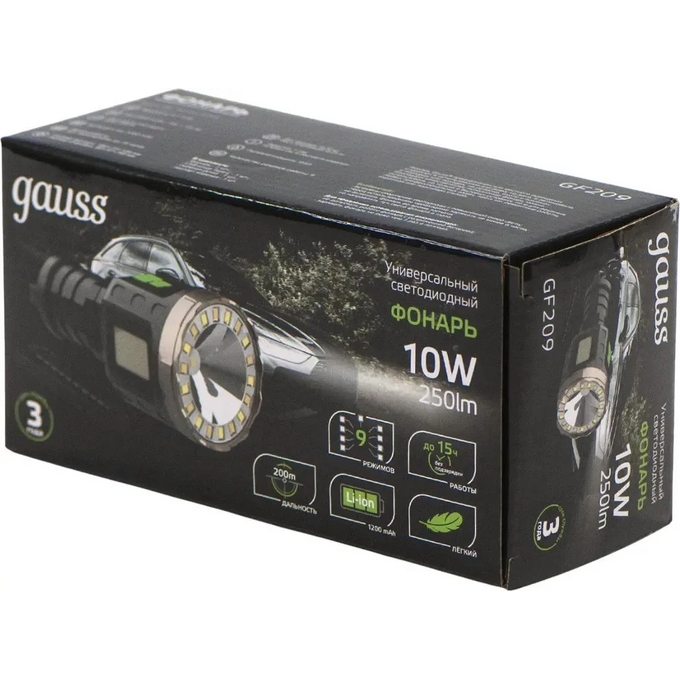 Фонарь ручной Gauss GFL209 черный 10Вт лам.:светодиод. встроенный аккумулятор (GF209)