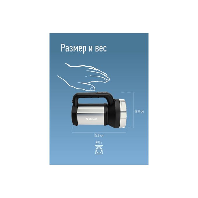 Фонарь ручной КОСМОС KOC900Lit Черный/серебристый