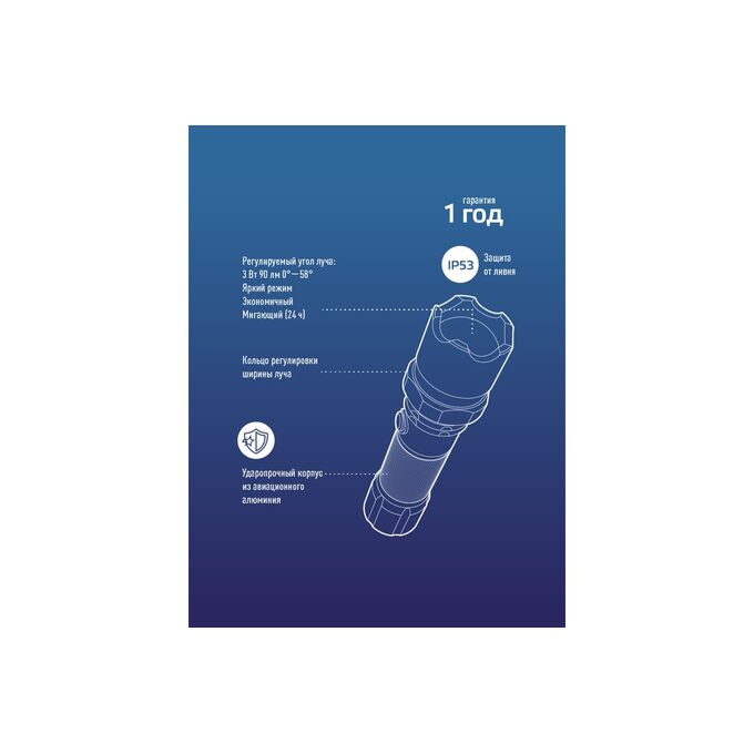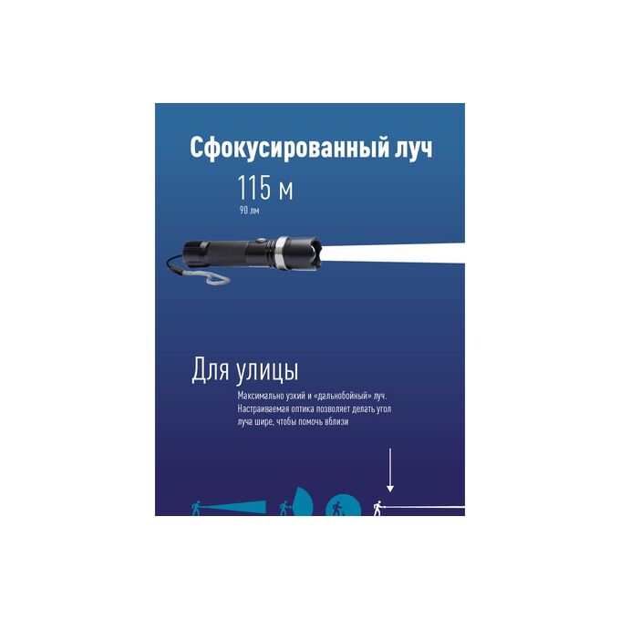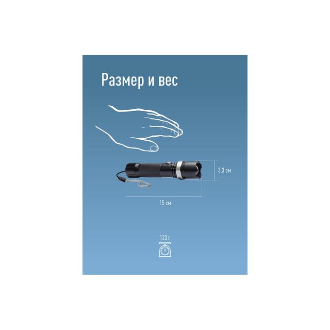5.Источник света: 3 Вт LED (с линзой - при сохранении мощности светового потока, линза увеличивает дальность луча света и интенсивность светового излучения; зум - регулировка дальности и ширины луча).
