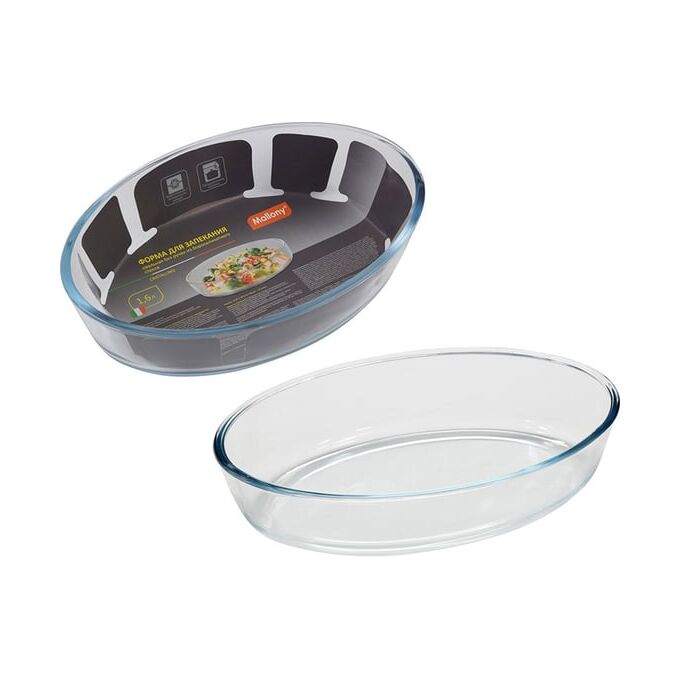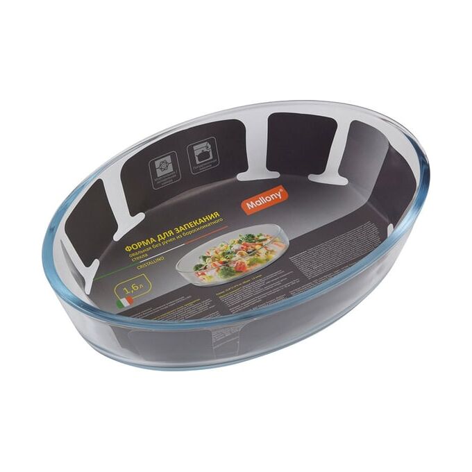 Форма для запекания Mallony CRISTALLINO объем 1.6 л из боросиликатного стекла овальная форма без ручек 005563 предназначена для бытового использования.