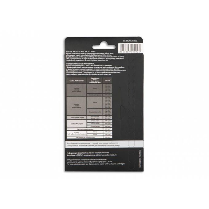 Фотобумага Cactus Prof CS-HGA626050 10x15/260г/м2/50л/белый глянцевое для струйной печати