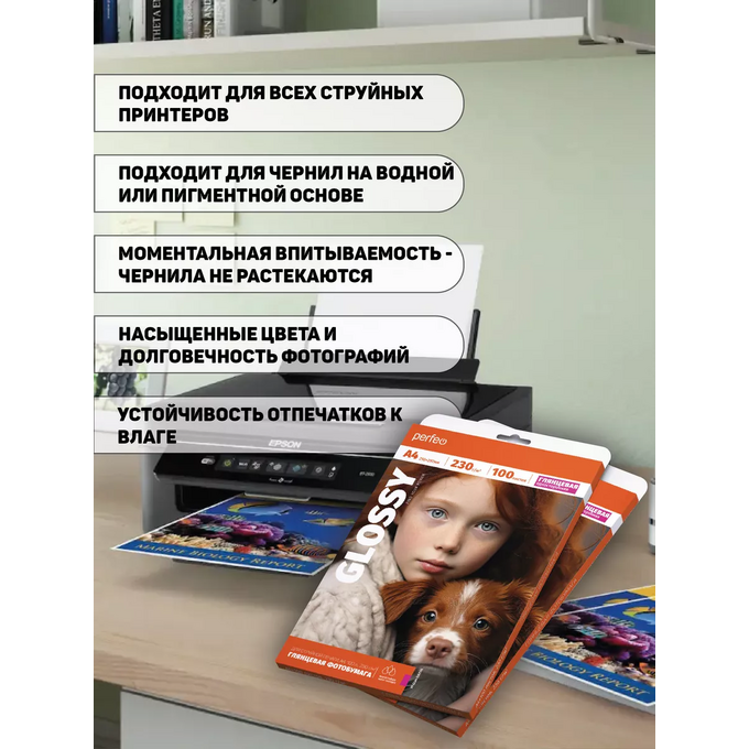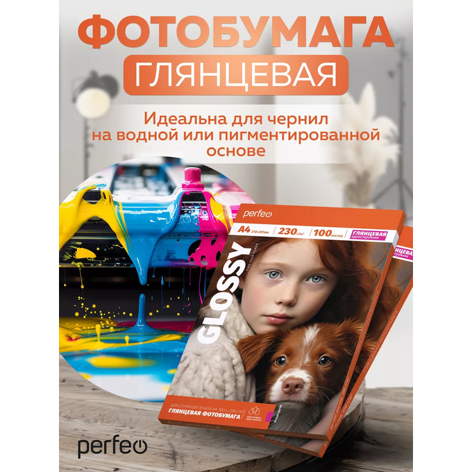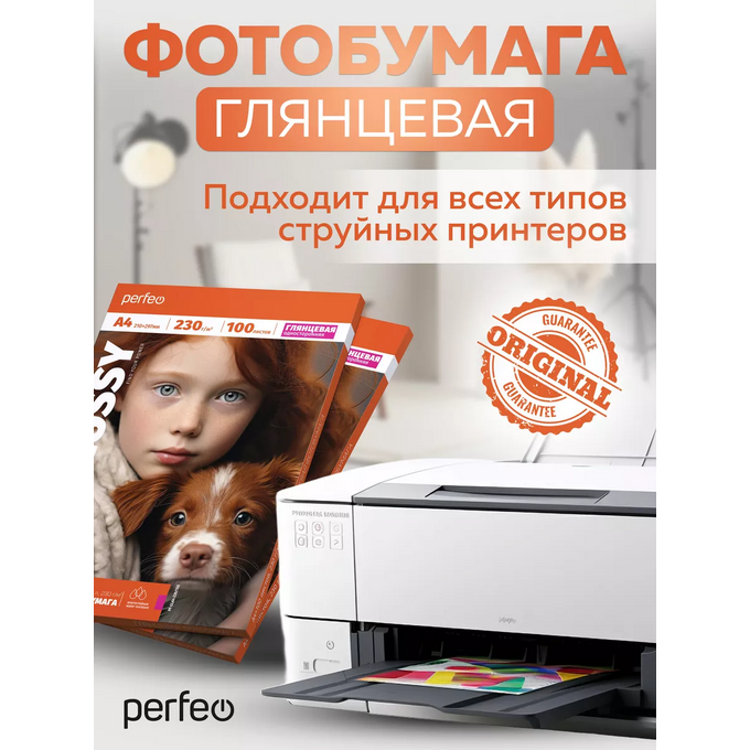 Модель Фотобумага Perfeo А4 230 г/м2 глянцевая 100л
