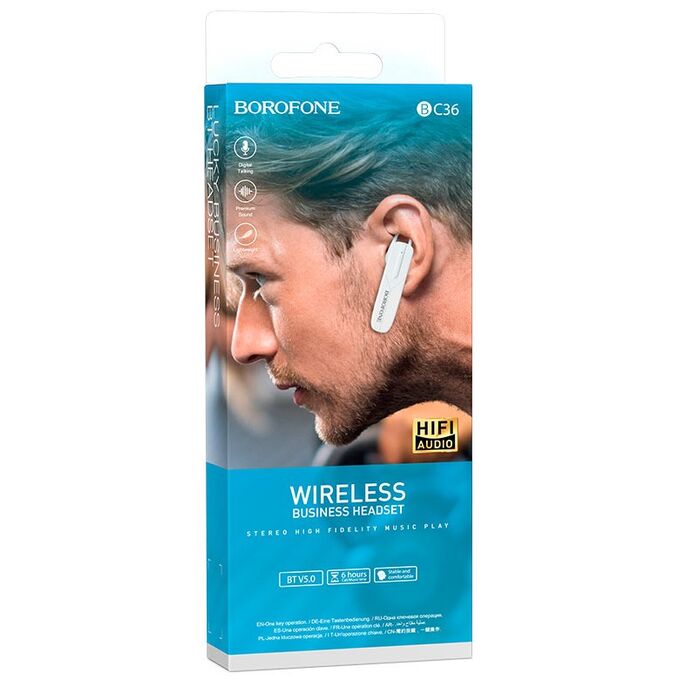 Беспроводная гарнитура BC36 поддерживает Bluetooth V5.0, аккумулятор ёмкостью 70 мАч обеспечивает непрерывную работу до 6 часов в режиме прослушивания музыки и до 180 часов в режиме ожидания. Время зарядки составляет 1 час. Вес гарнитуры - всего 7 г.