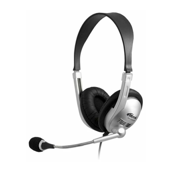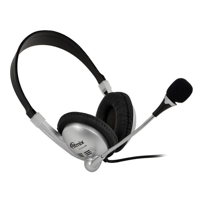 Наушники Ritmix RH-533USB Silver, микрофон, регулятор громкости, выключатель микрофона, выключатель наушников, O40 мм, кабель: 2,4 м