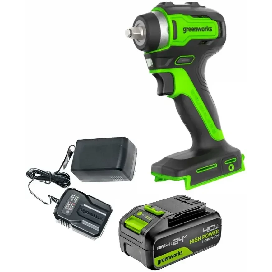Гайковерт Greenworks G24IW200 (3803607CUB) ударный аккумуляторный, 24V, 200 Нм, бесщеточный, 3/8'', 1х4Ач, ЗУ, кор