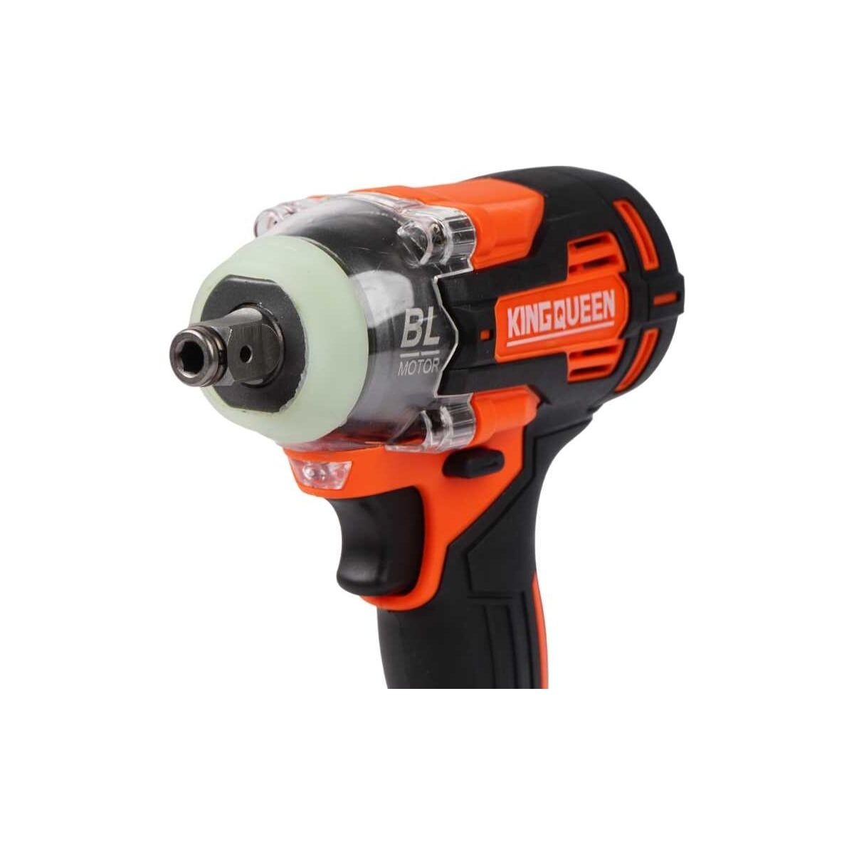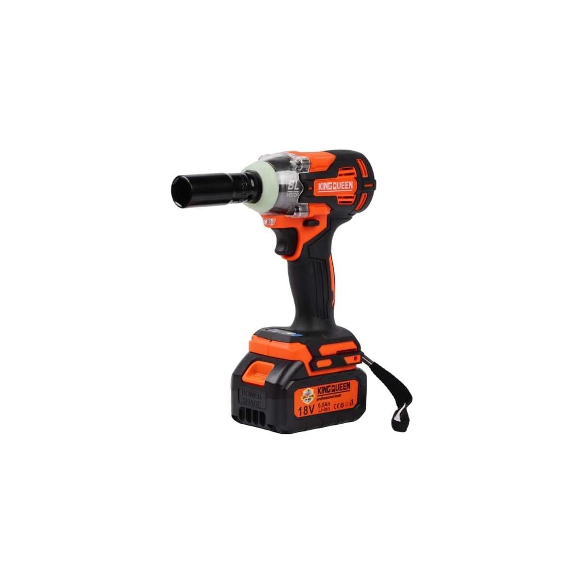 Аккумуляторный гайковерт «KINGQUEEN» нужен для оперативного закручивания или откручивания гаек или болтов. Инструмент оснащен мощным бесщеточным двигателем с крутящим моментом 320 Нм, который разгоняет скорость вращения шпинделя до 2600 оборотов в минуту. Он оснащен кнопкой реверса для смены направления вращения, имеет 3 скорости переключаемые кнопкой, также плавную регулировку оборотов пусковой кнопкой и оснащен электрическим тормозом.
