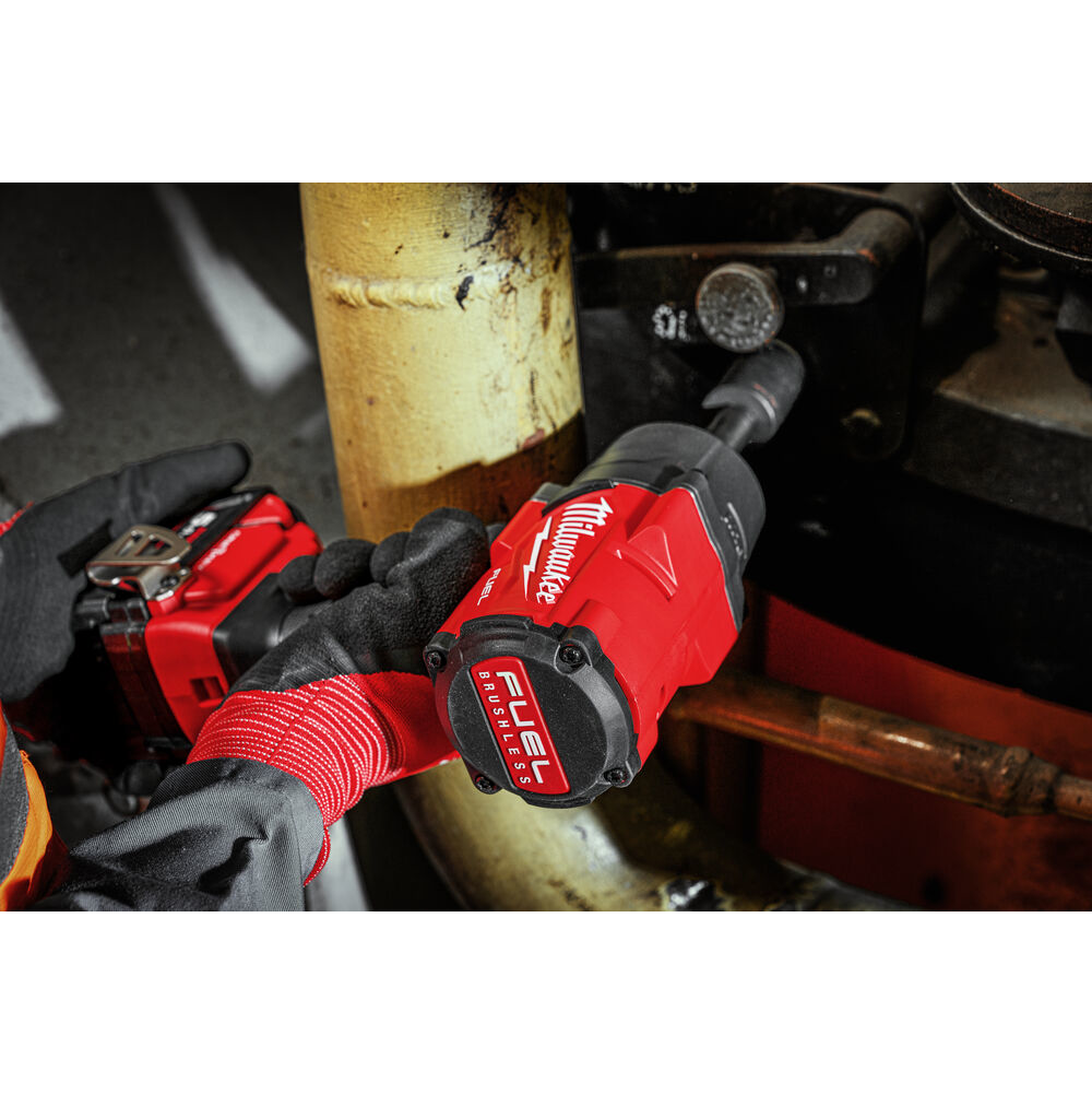-Высокомоментный ударный гайковерт M18 FUEL с удлинённым шпинделем и технологией ONE-KEY обеспечивает 1500 Нм крутящего момента на срыв.