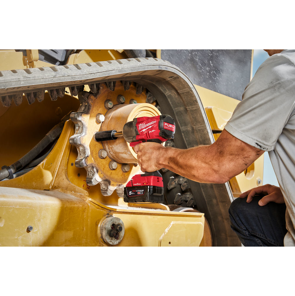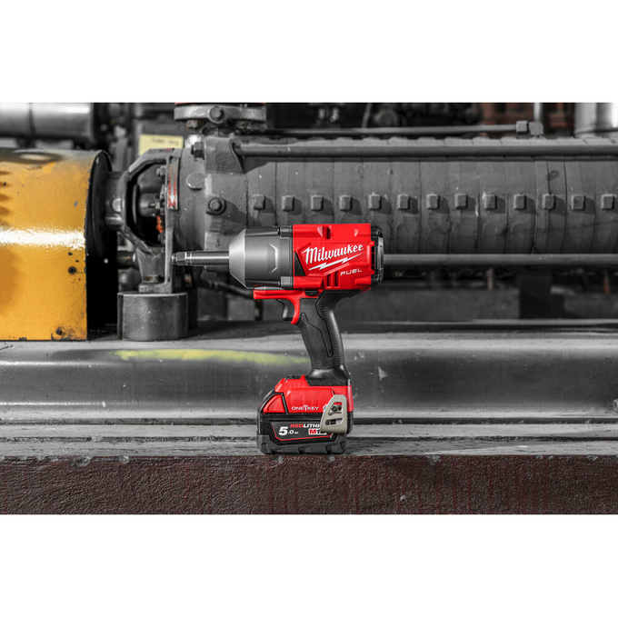 -Высокомоментный ударный гайковерт M18 FUEL с удлиненным шпинделем (75 мм с квадратом 1/2"), фрикционным кольцом и технологией ONE-KEY обеспечивает 1017 Нм крутящего момента на заворачивание.
