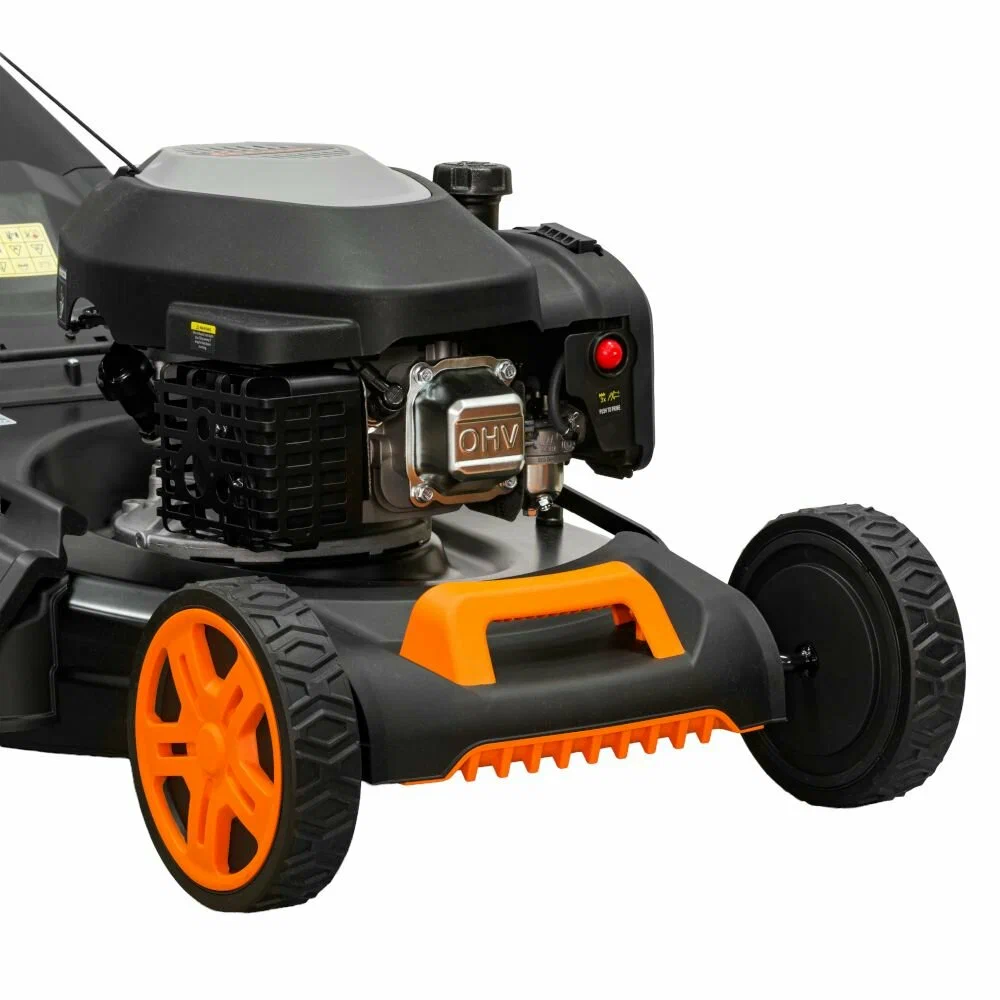 Газонокосилка оснащена 4-х тактным бензиновым двигателем мощностью 6.2 л. с, что обеспечивает высокую производительность и экономичность. Объем двигателя составляет 223 куб. см, а количество тактов - 4. Это гарантирует стабильную работу и долгий срок службы.