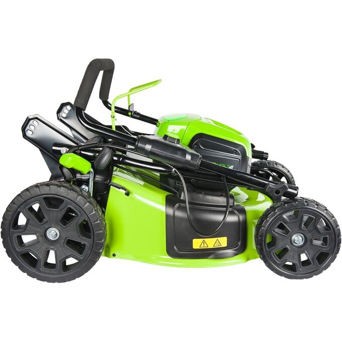 Мощный бесщеточный двигатель серии DigiPro; Стальная дека; Защита двигателя от механических повреждений; Ключ безопасности и кнопка-предохранитель; Работа от 60V аккумулятора, совместимого с другими устройствами из линейки 60V; Гарантия 2 года.