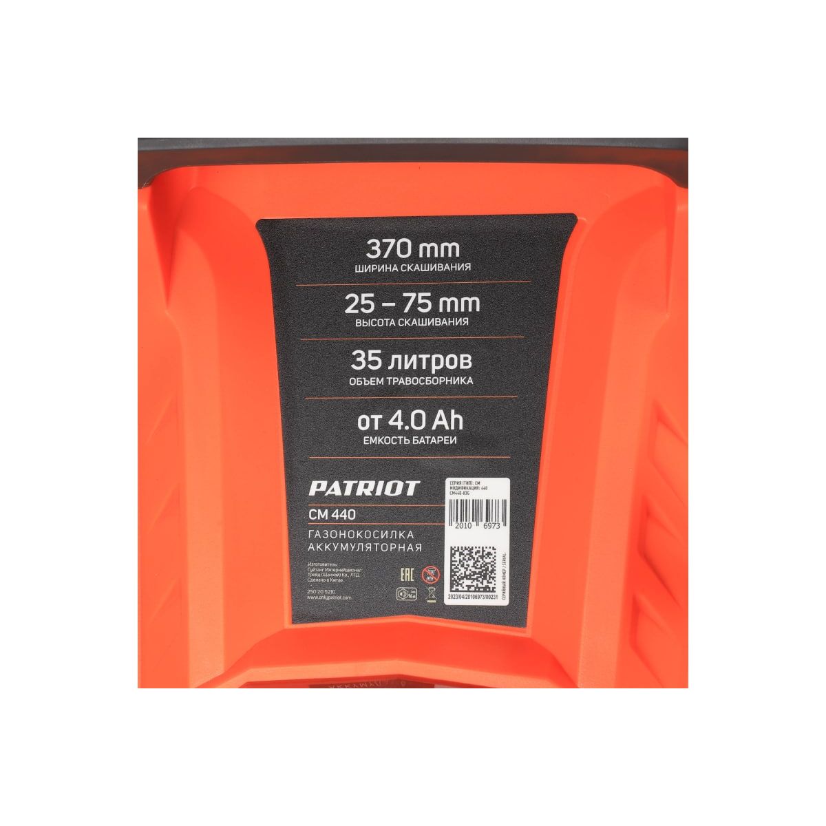 Аккумуляторная газонокосилка Patriot CM 440 221В UES 250205210 - компактная и удобная модель. Надежный бесщеточный двигатель обеспечивает высокий уровень КПД. Центральная регулировка высоты кошения - 6 позиций регулировки.