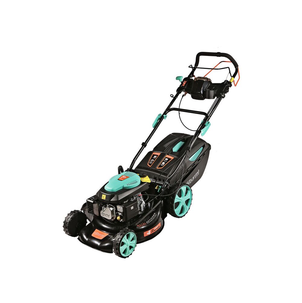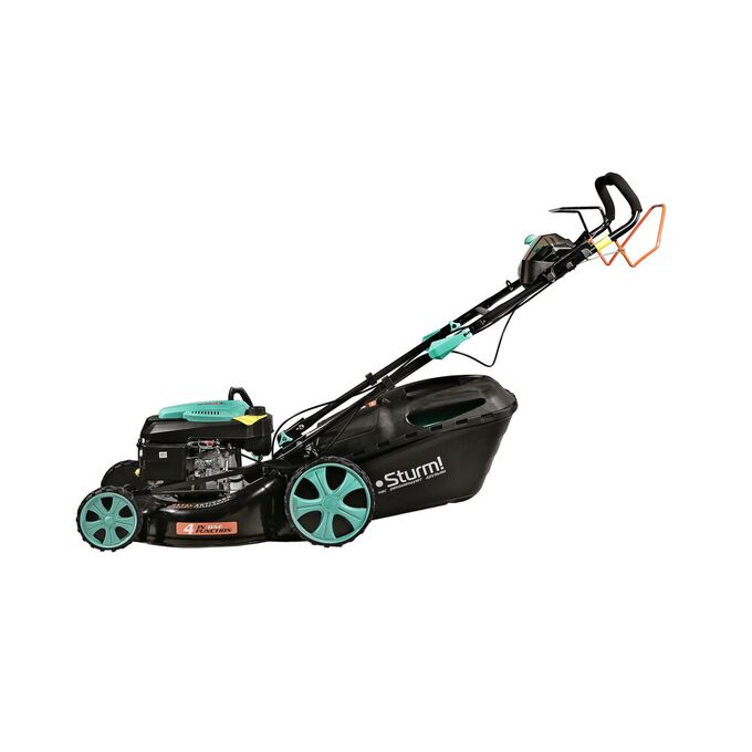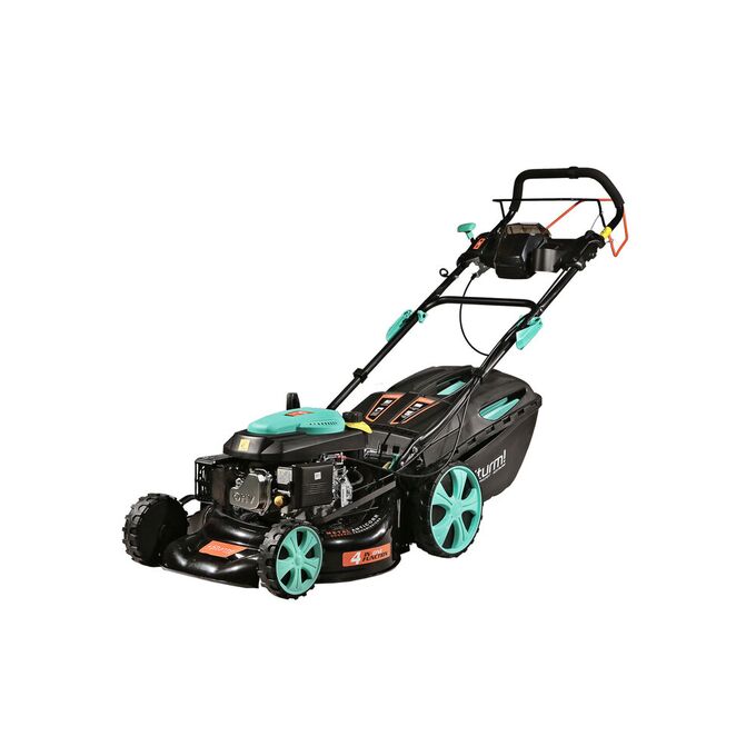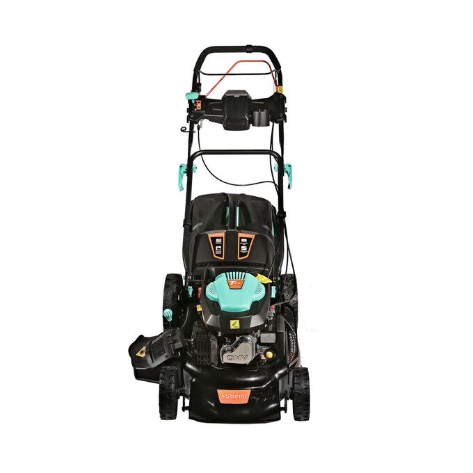 Газонокосилка работает в четырех режимах: боковой выброс травы, задний выброс травы, режим мульчирования и сбор травы с травосборник