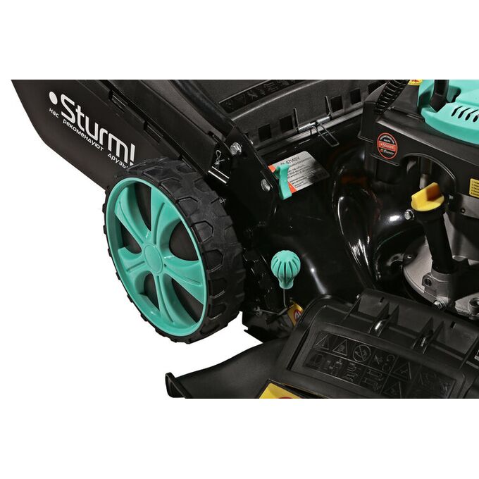 Удобный рычаг регулировки позволяет легко выбрать наиболее подходящую высоту среза в диапазоне от 25 мм до 80 мм