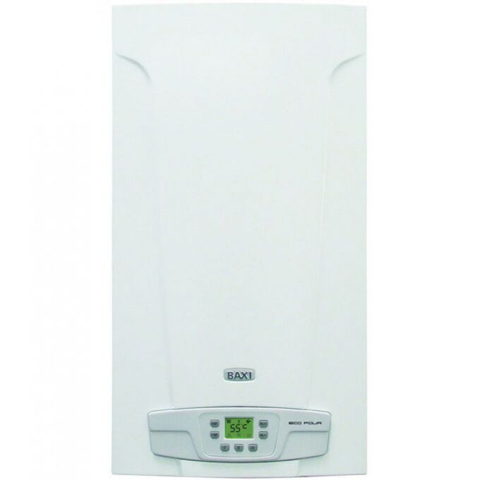 Газовый конвекционный настенный котел Baxi ECO FOUR 1.24 F мощностью 24 кВт с закрытой камерой сгорания. Предназначен для отопления загородных домов, дач и других помещений, способен обогреть до 240 м2.