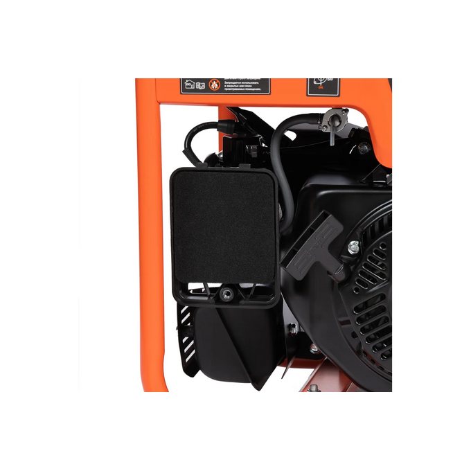 На рабочей панели есть индикаторы для визуального контроля параметров выходного напряжения, а также индикатор о необходимости добавления масла в картер. В конструкции предусмотрены демпферные подушки для сглаживания вибраций во время работы установки. Инверторная технология обеспечивает превосходное качество тока, что позволяет обслуживать чувствительную электронику, например, ноутбук, насосное оборудование, обогреватель.