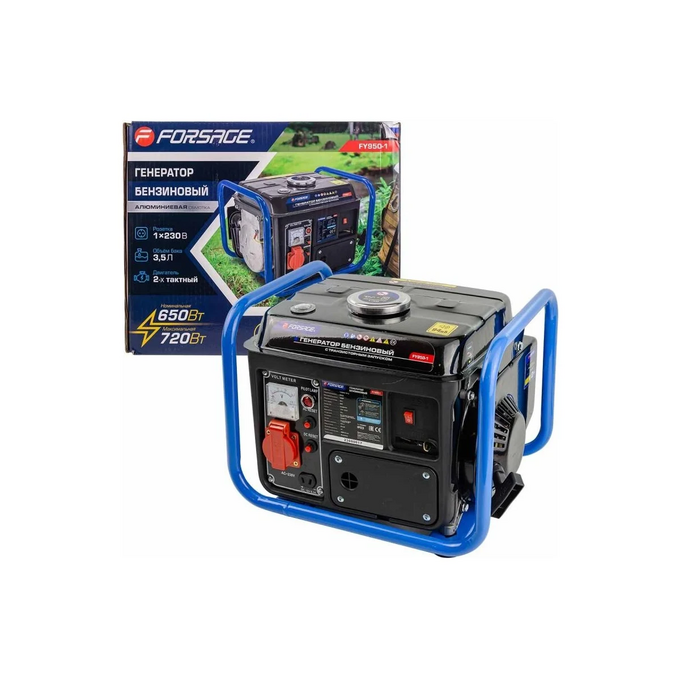 Forsage Генератор автономный бензиновый f-fy950-1 - это надежное решение для обеспечения автономного электроснабжения. Генератор оснащен 2-х тактным двигателем мощностью 2 л.с. и объемом 63 куб. см, что обеспечивает стабильную работу при номинальной мощности 650 Вт и максимальной мощности 720 Вт при напряжении 220 В. Объем топливного бака составляет 3,5 литра, что позволяет работать продолжительное время без дозаправки. Генератор имеет степень защиты IP23 и оснащен медной обмоткой альтернатора, что повышает его долговечность. Уровень шума составляет 94 дБ. Контроль напряжения осуществляется с помощью системы AVR, что обеспечивает стабильность выходного напряжения.