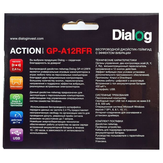 Геймпад Dialog Action GP-A12RFR беспроводной (RF2.4G, вибрация, 12кнопок, 450мА*ч, USB) (243562)
