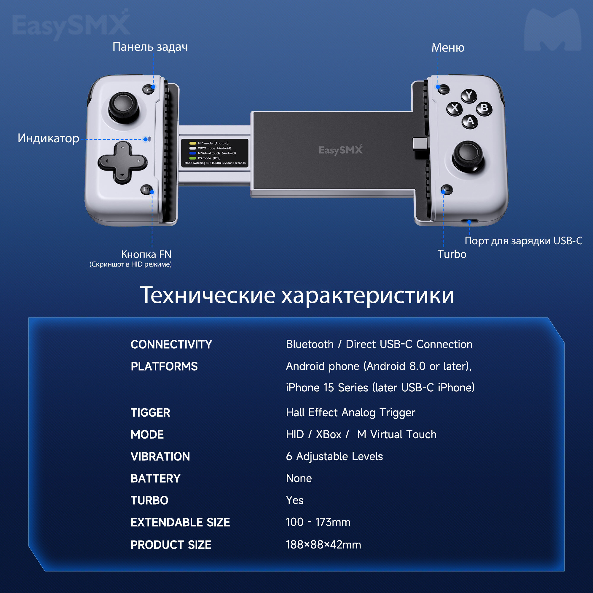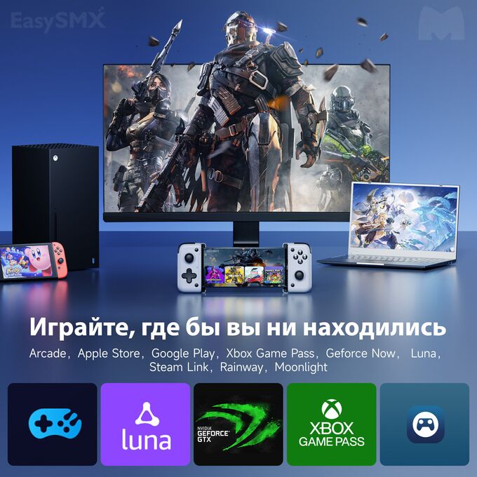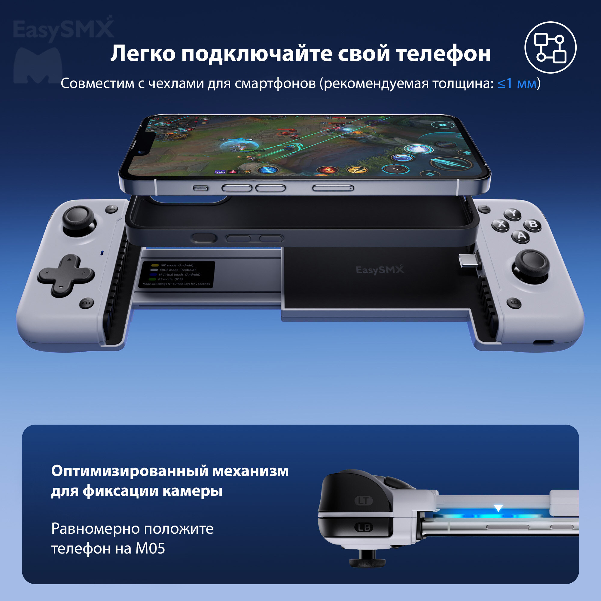 Геймпад EasySMX M05 совместим с широким спектром устройств Android и моделями Apple выше версии 15, что обеспечивает непревзойденную совместимость с играми. Кроме того, его продуманный дизайн позволяет избежать засорения объективов большинства популярных смартфонов, что позволяет без проблем использовать его даже в чехлах для телефонов. Геймпад поддерживает как Bluetooth, так и прямое подключение по USB-C.