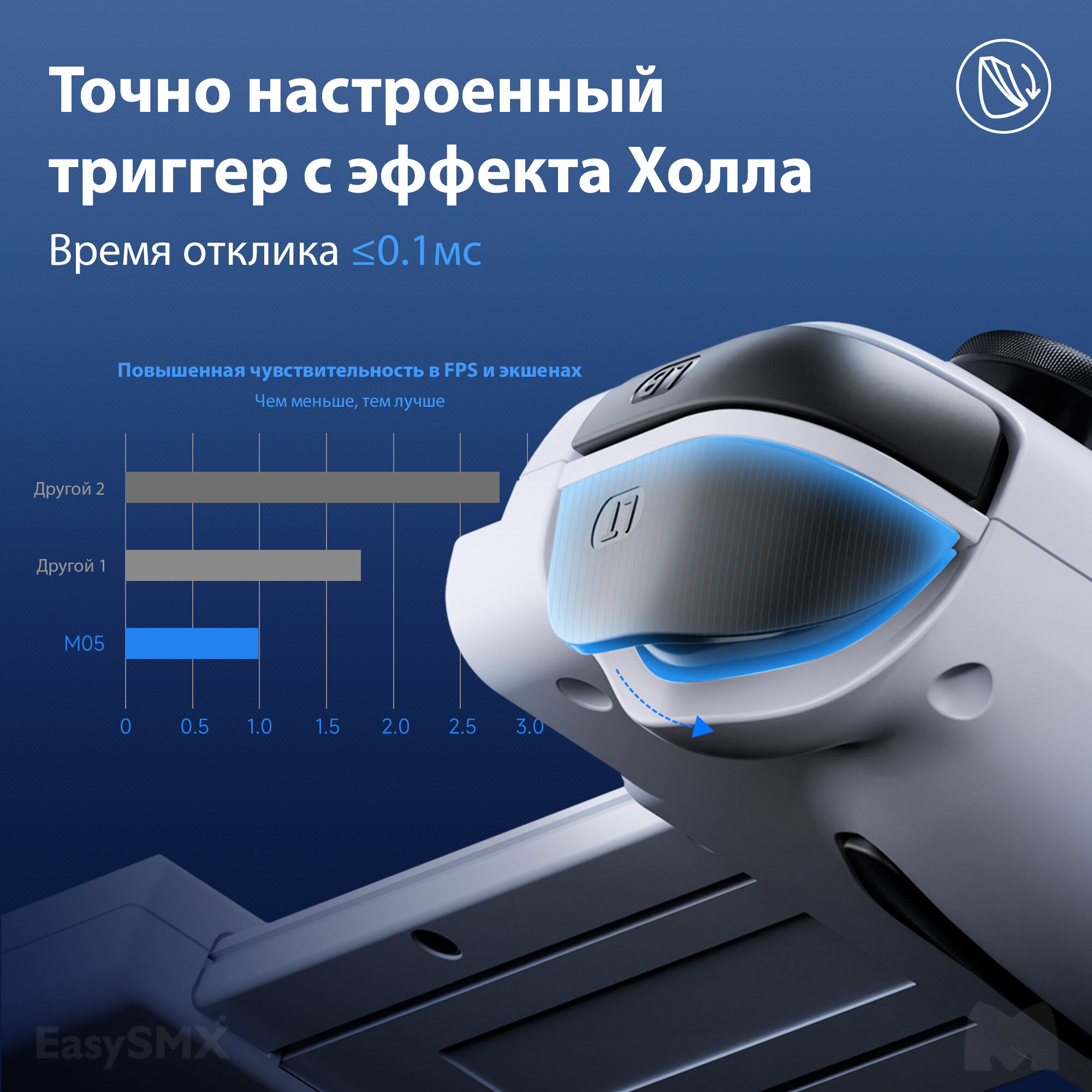 M05 улучшает качество мобильных игр благодаря добавленным функциям вибрации (зависящим от игры) и эффекту Холла на триггерах, что обеспечивает повышенную точность. Благодаря сквозной зарядке ваш телефон остается включенным во время игры, просто подключив зарядный кабель к контроллеру.