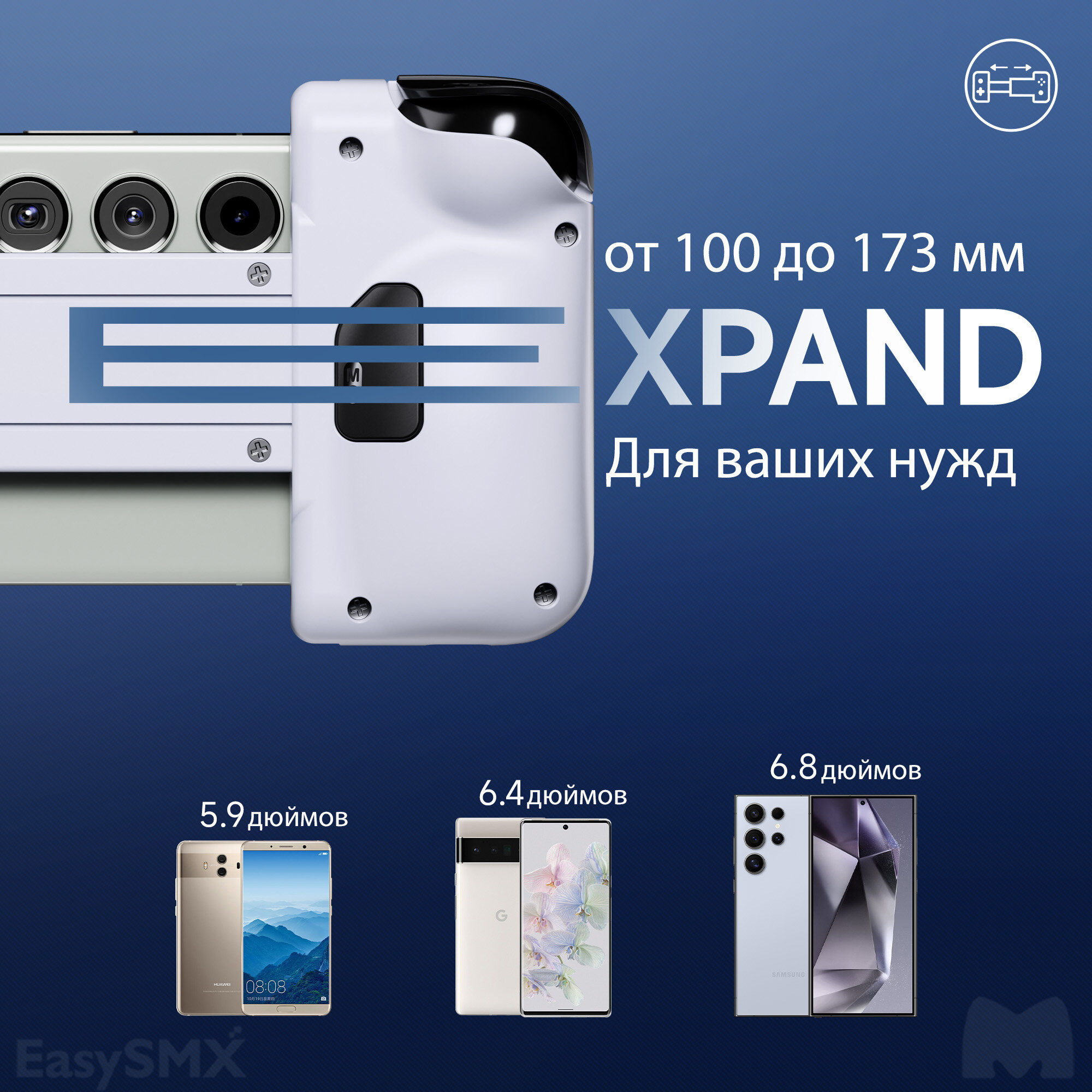 EasySMX M05 может похвастаться регулируемым размером в диапазоне 100-173 мм, что позволяет использовать его для широкого спектра смартфонов с диагональю от 5,9 до 6,8 дюймов. Чтобы обеспечить максимальное удобство для мобильных геймеров, в EasySMX M05 усовершенствована вся конструкция, которая поддерживает функцию поворота камеры и позволяет пользователям играть в игры в чехле!