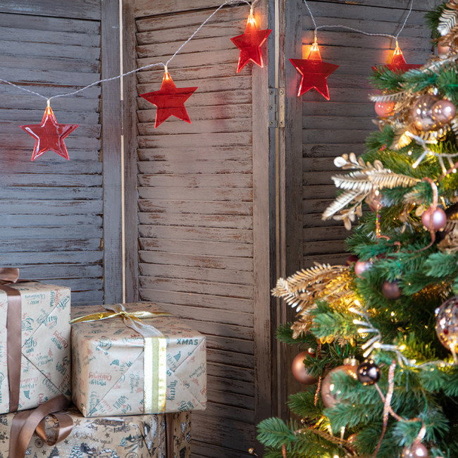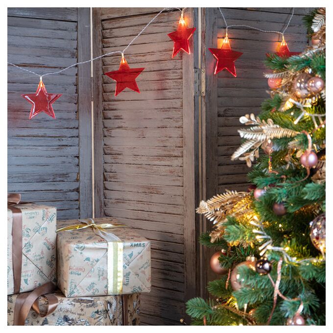 Гирлянда Neon-Night 304-002 Звездопад красная 10 LED 2,25 м прозрачный ПВХ теплый белый свет свечения 2 х АА (без батареек)