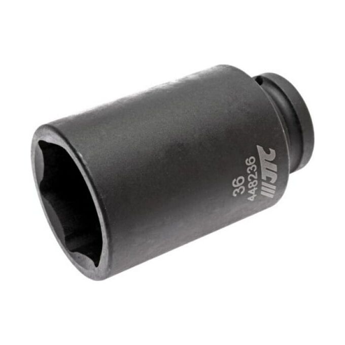 Головка торцевая 1/2” 36 ударная высокая L=82мм JTC 448236 - это компактное ручное приспособление, которое используется для демонтажа различного крепежа, соединяющего конструктивные элементы легкового и грузового транспорта. Также подходит для машин и механизмов, используемых в промышленности, сельском хозяйстве и др. сферах. Данная модель применяется совместно с гаечным ключом или воротком на 1/2"х36 мм. Материал головки - высокопрочная хром-молибденовая сталь.