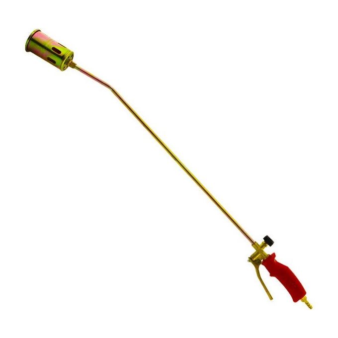 Горелка ручная газовоздушная пропановая с одним турбо соплом диаметром 50 мм для нагрева изделий и заготовок из черных и цветных металлов. Горелка с рычагом подачи горючего газа. Длина горелки 900 мм. Работает на пропан-бутановой смеси. Горелка имеет рычажное исполнение.