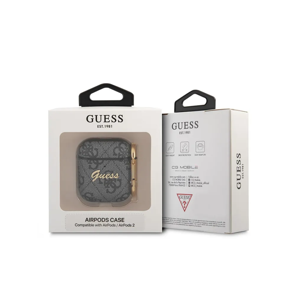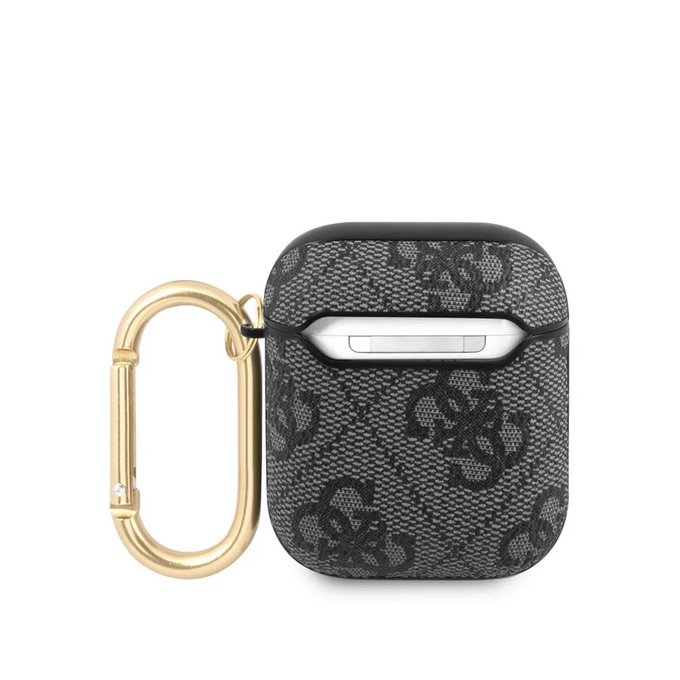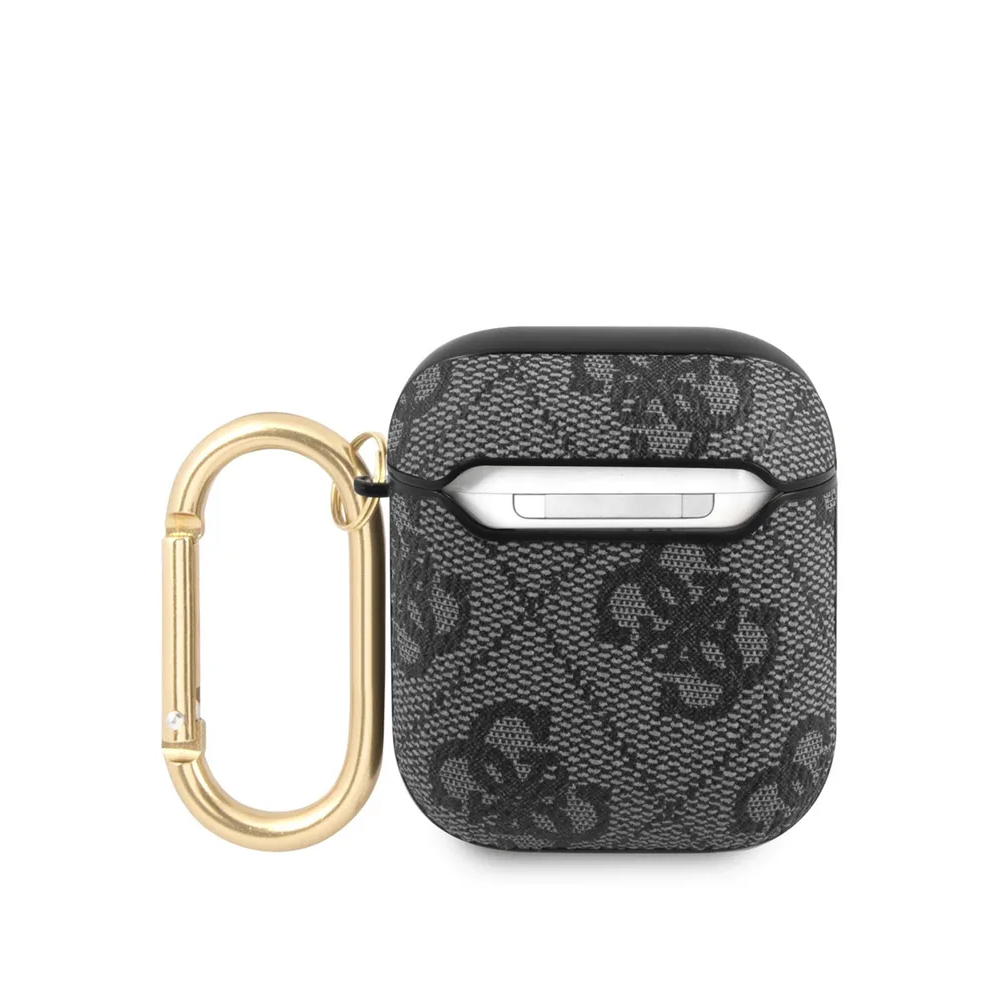 Guess для Airpods 1/2 чехол PU leather 4G with metal logo and carabin Grey