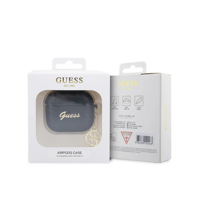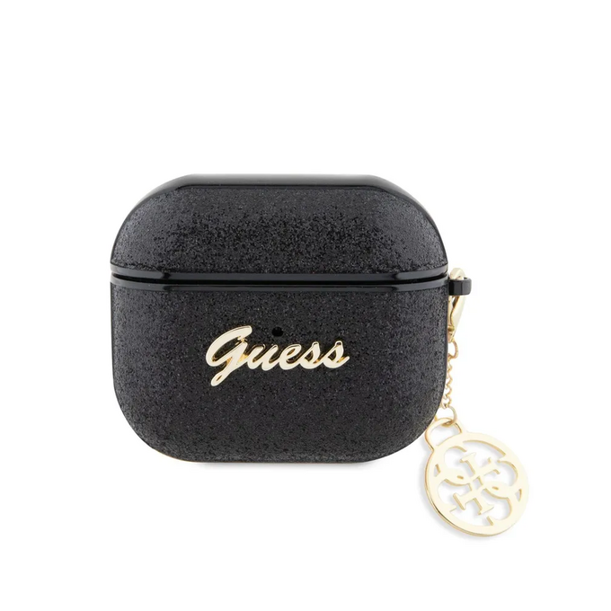 Guess для Airpods 3 чехол Glitter flakes Metal logo with Charm Black