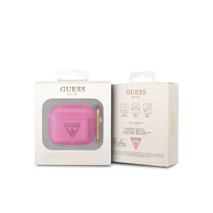 Guess для Airpods 3 чехол TPU with carabin Translucent Palm Tree Pink