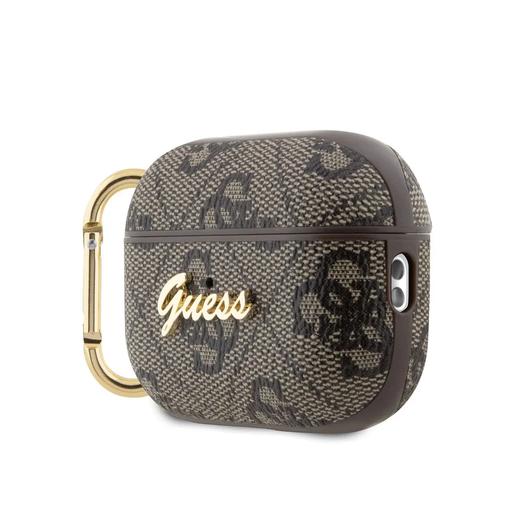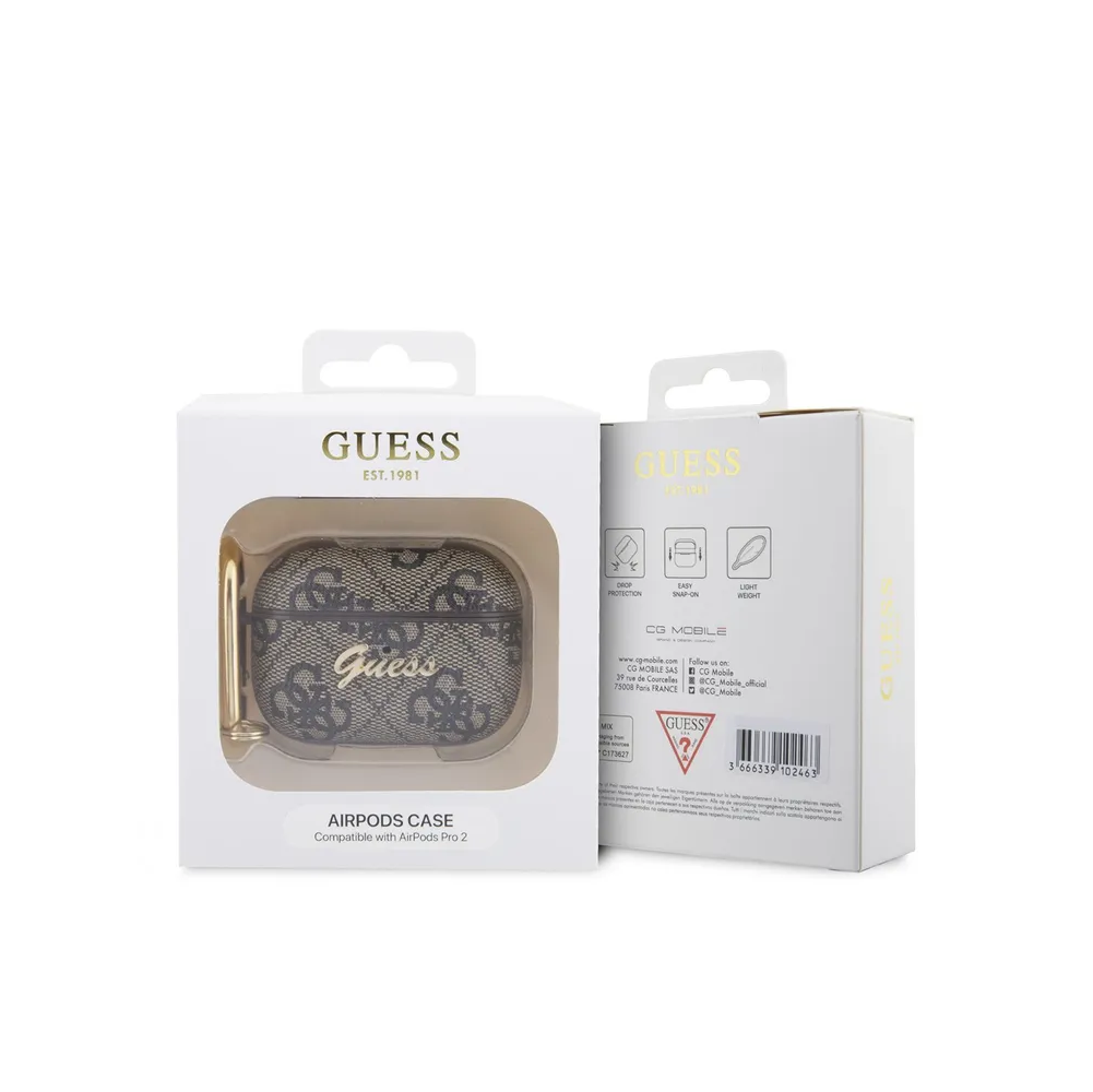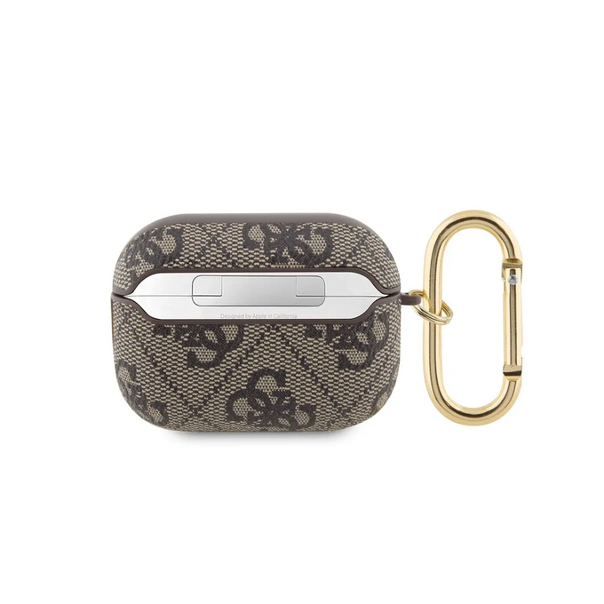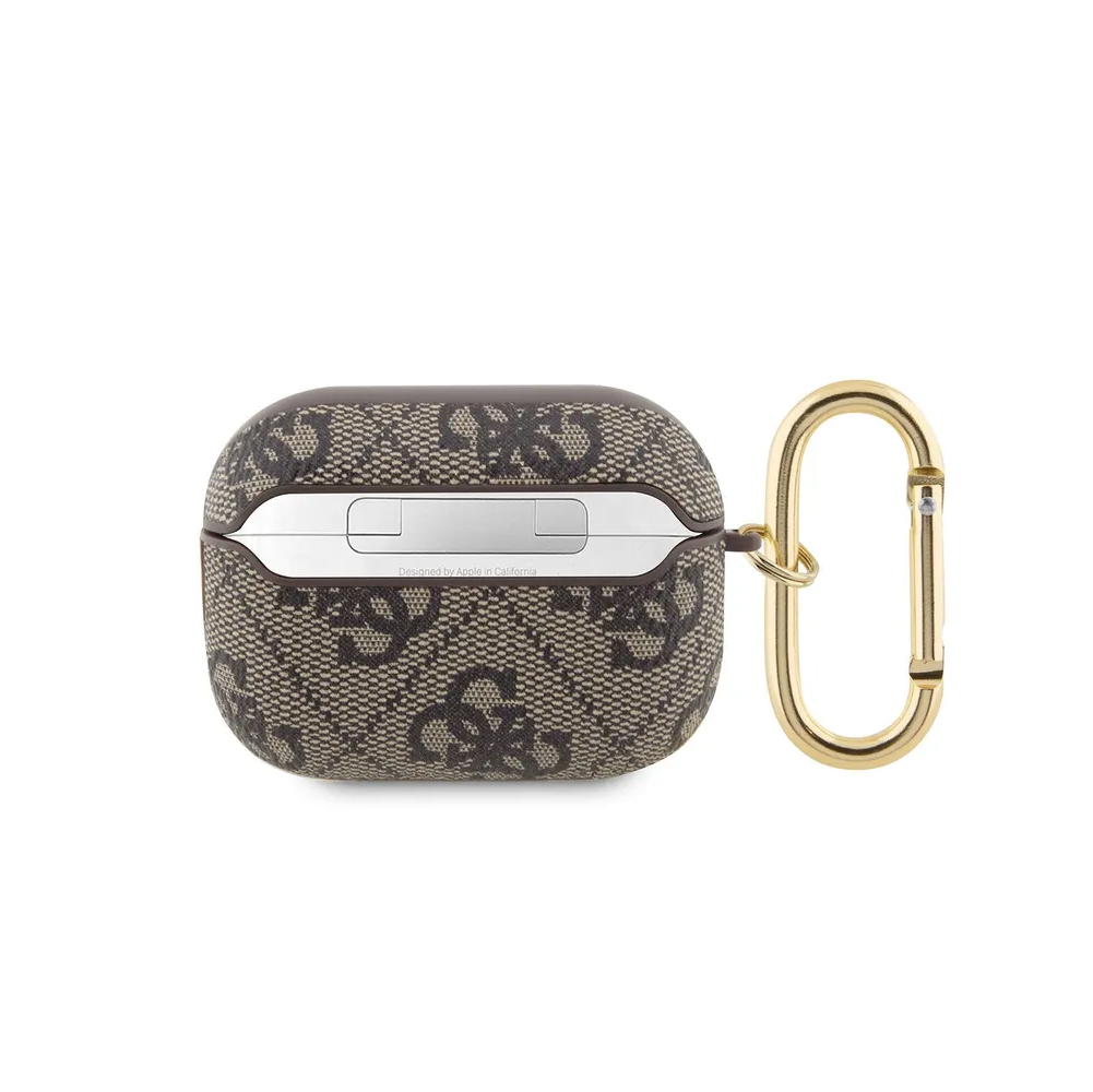 Guess для Airpods Pro 2 чехол PU leather 4G with metal logo and carabin Brown