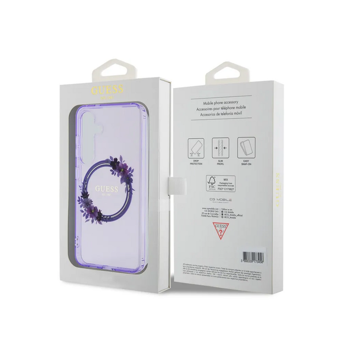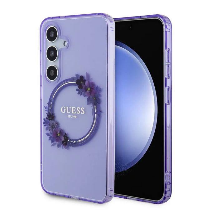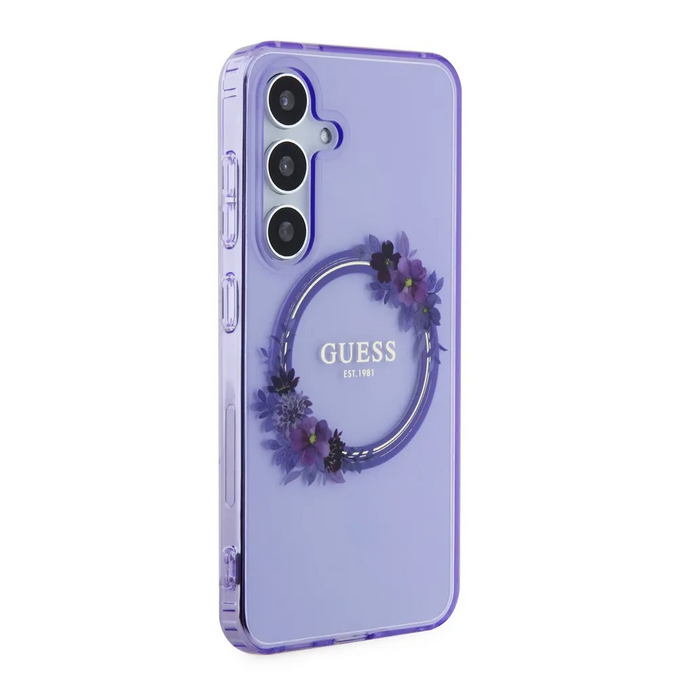 Guess для Galaxy S24 чехол PC/TPU Flowers Wreath Hard Purple (MagSafe)