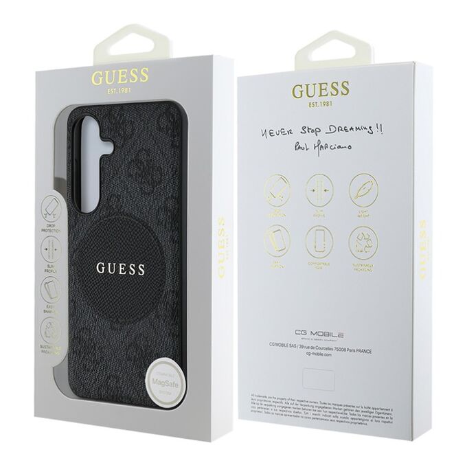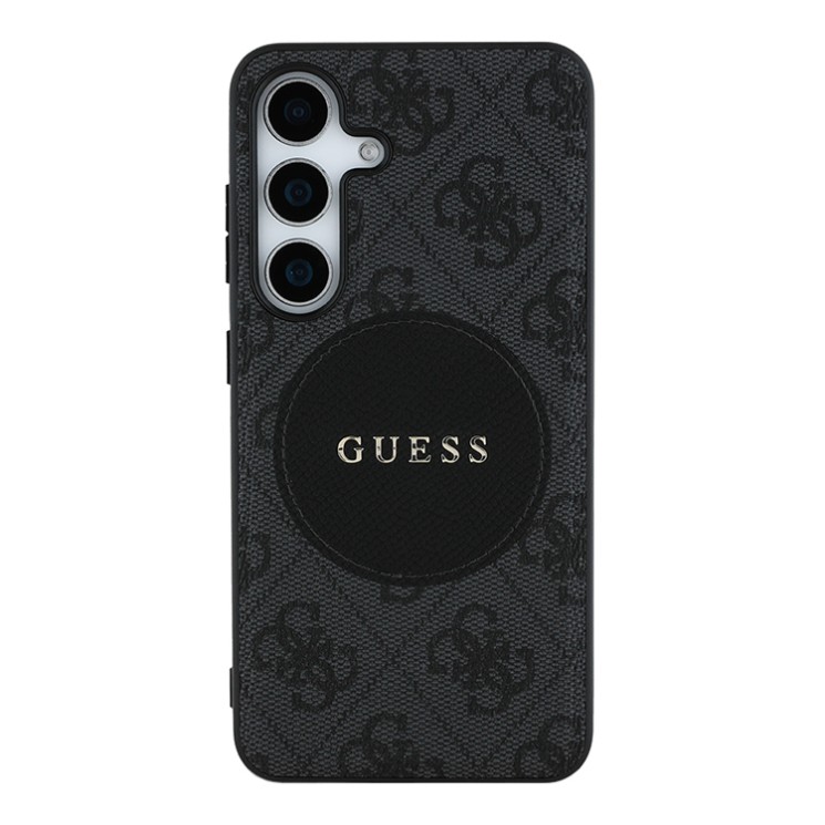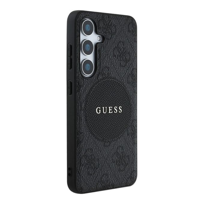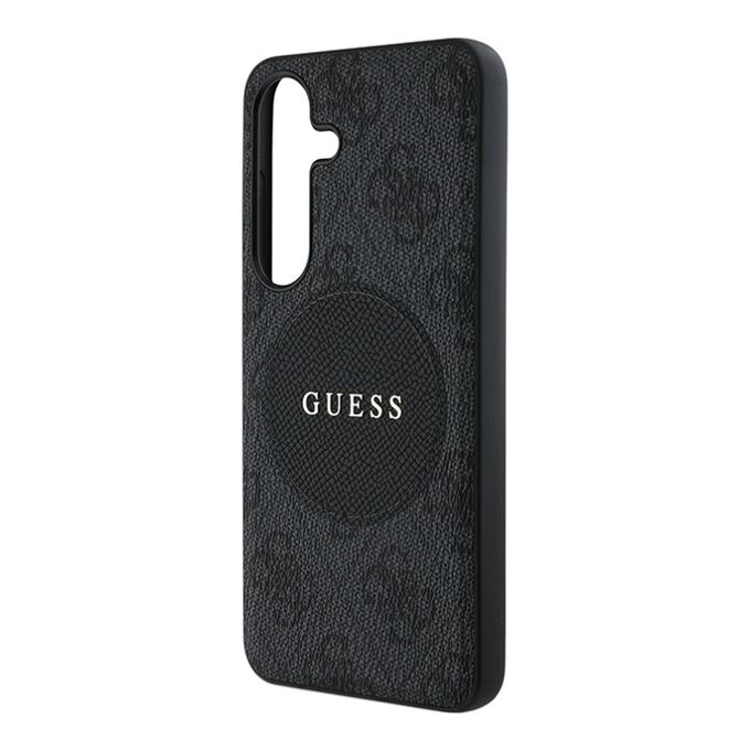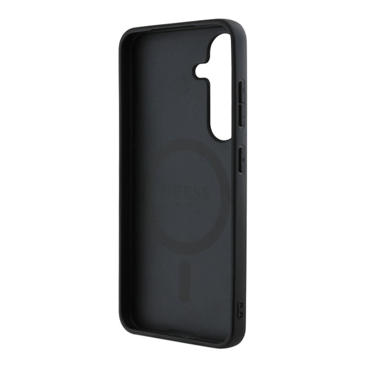 Guess для Galaxy S25 чехол PU 4G with Round Patch Metal logo Hard Black (MagSafe)