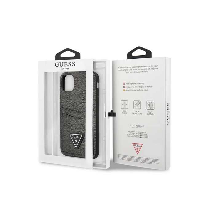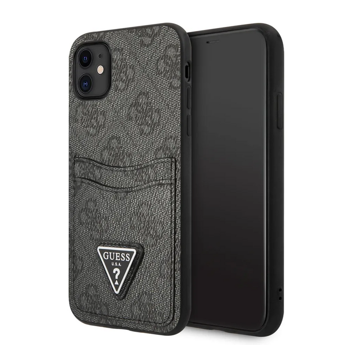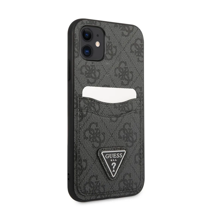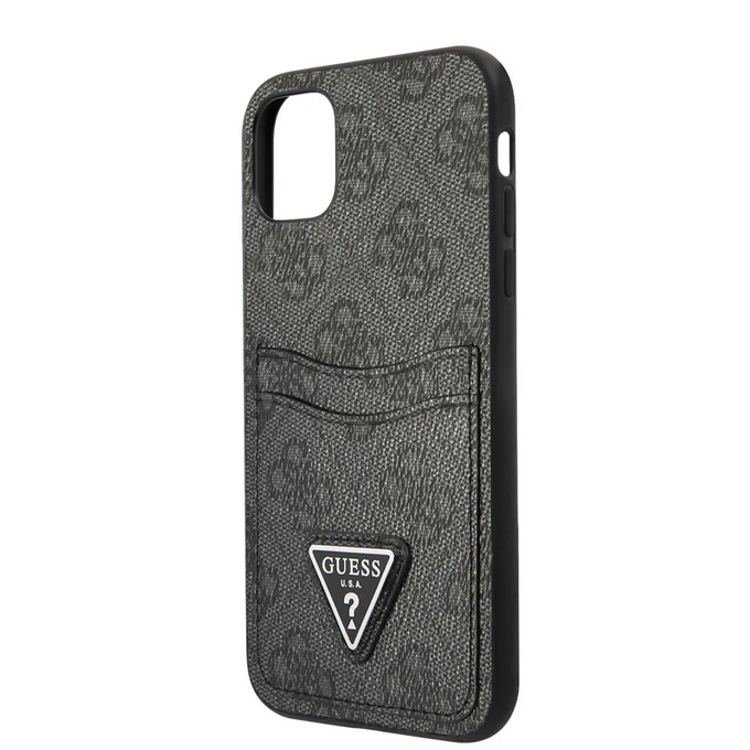 Guess для iPhone 11 чехол PU 4G Double cardslot Metal triangle logo Hard Black