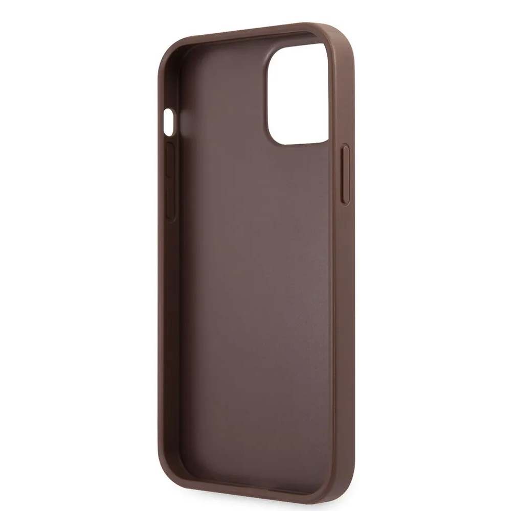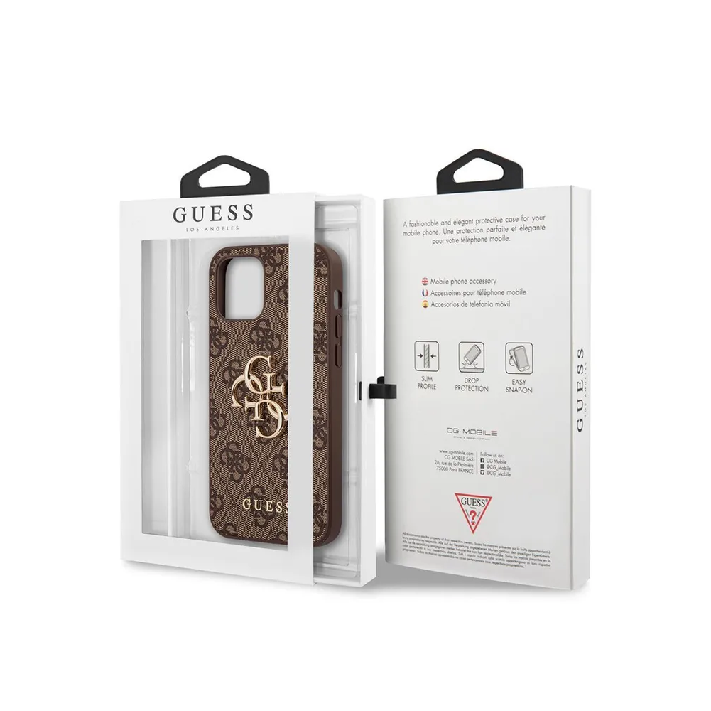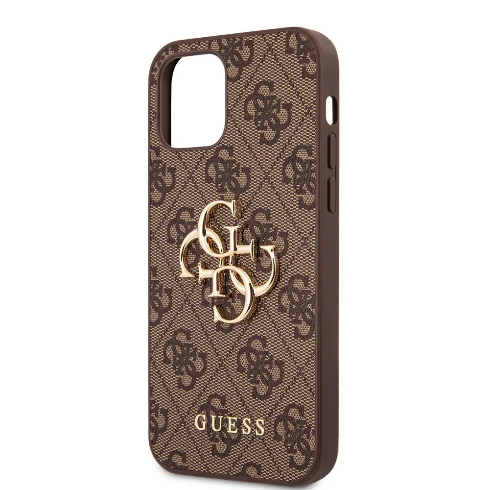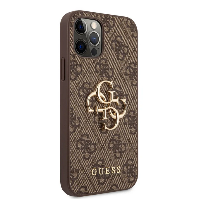Guess для iPhone 12/12 Pro (6.1) чехол PU 4G Big metal logo Hard Brown