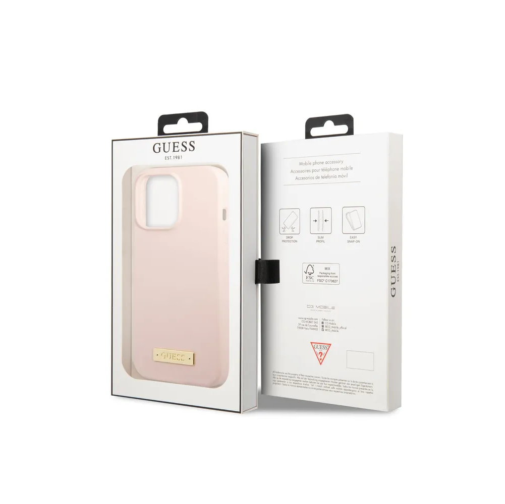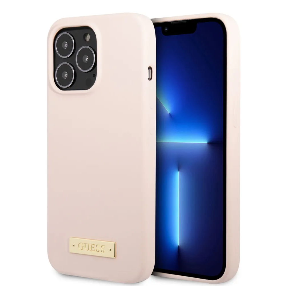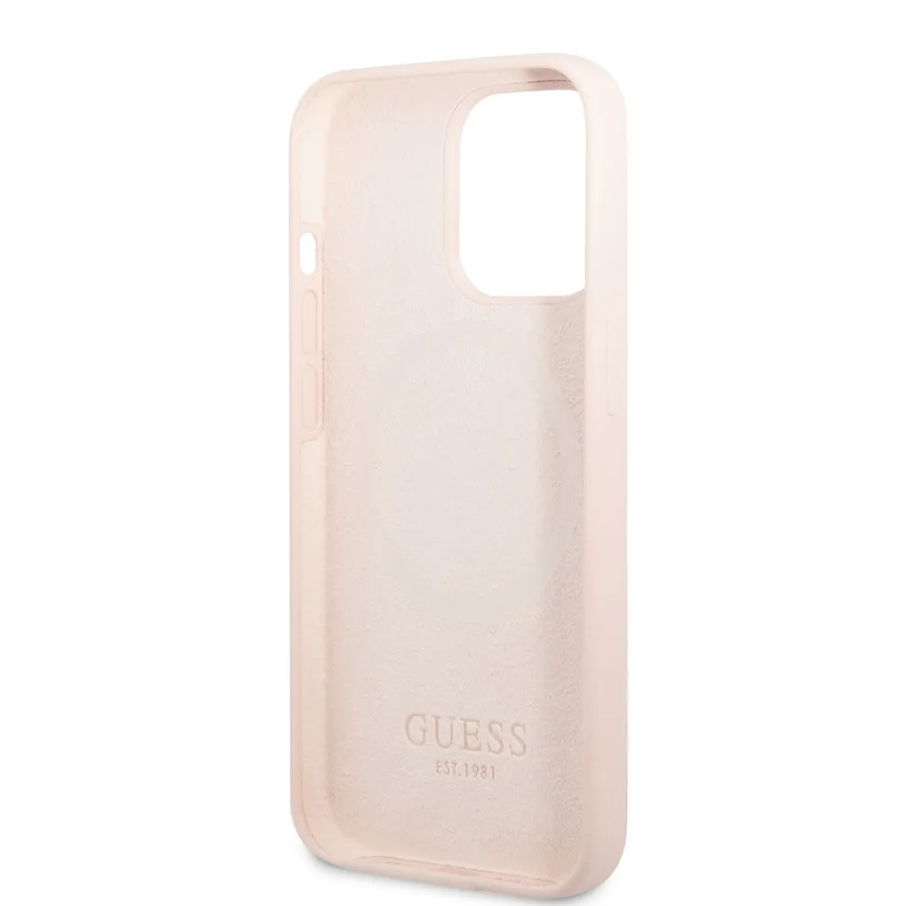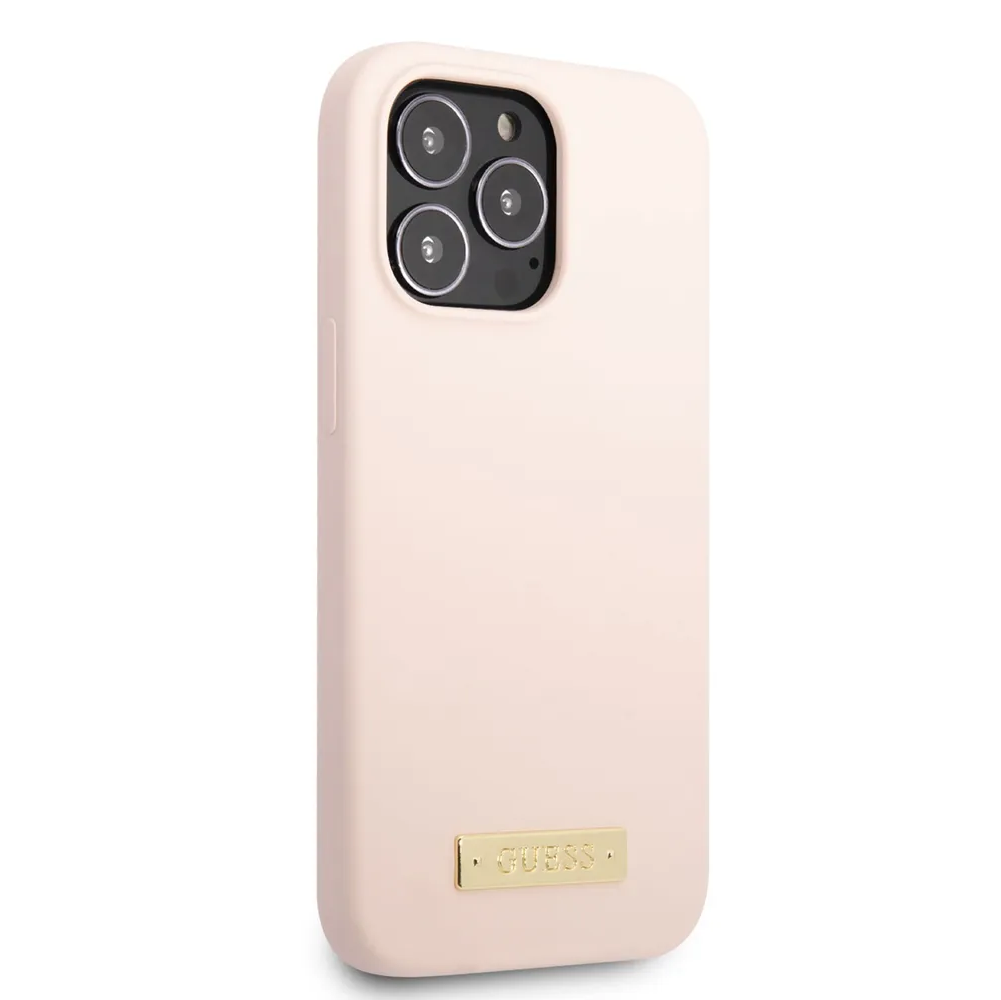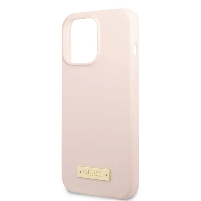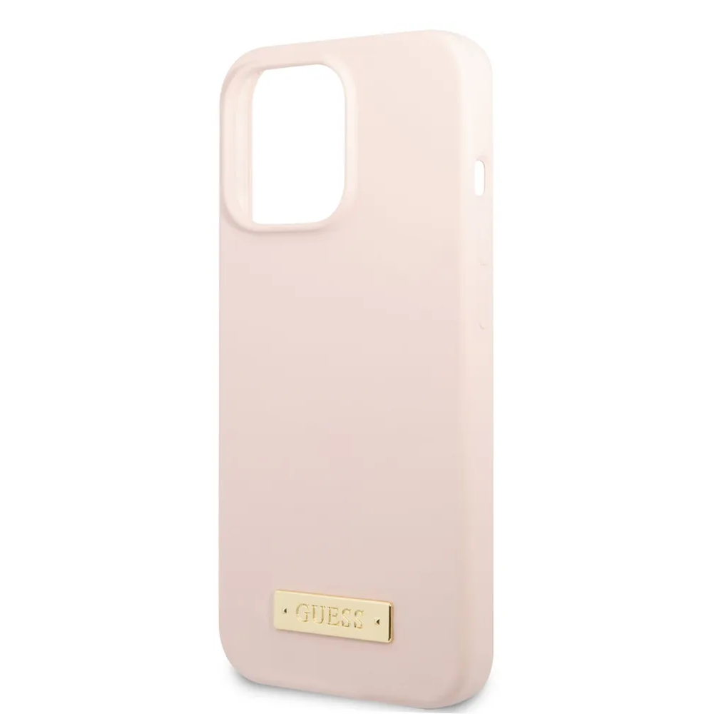 Guess для iPhone 13 Pro Max чехол MagSafe Liquid silicone Plate metal logo Hard Pink