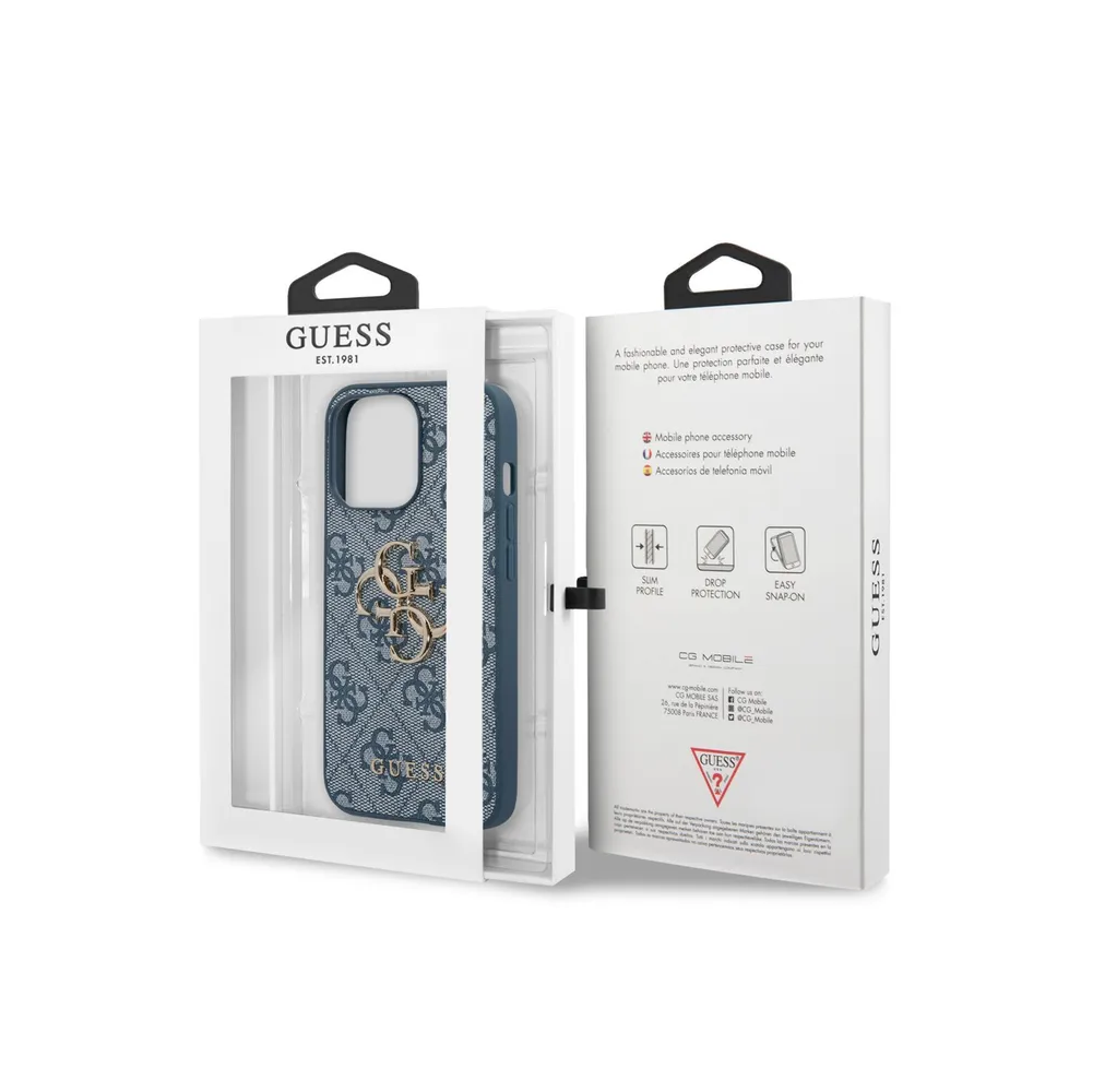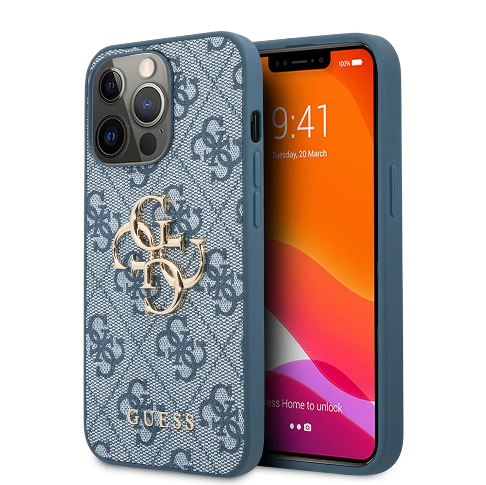 Guess для iPhone 13 Pro Max чехол PU 4G Big metal logo Hard Blue