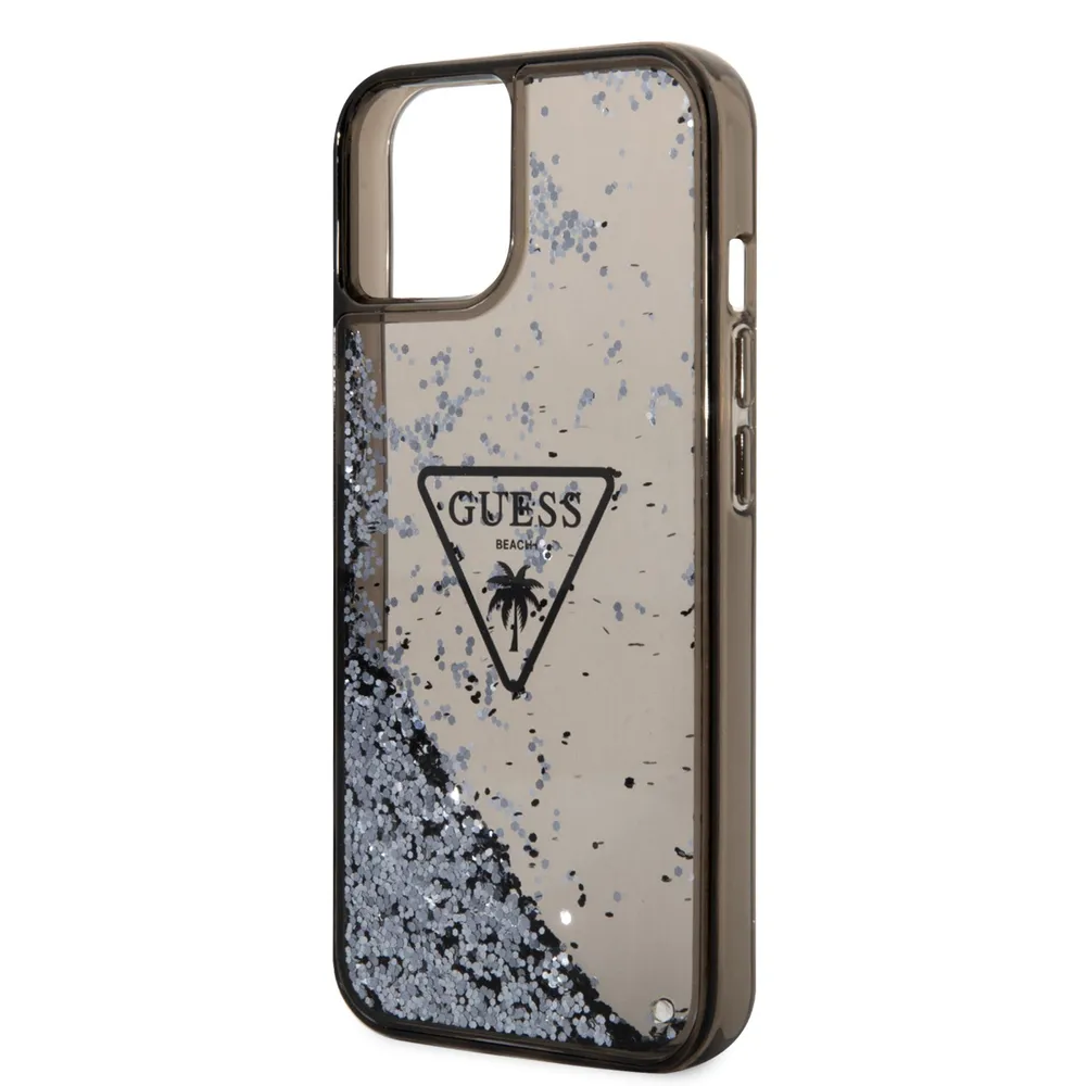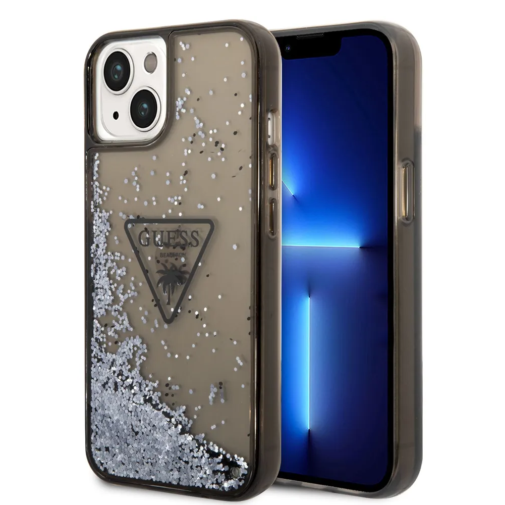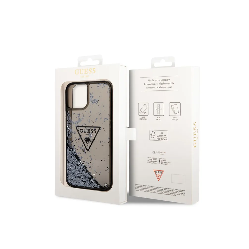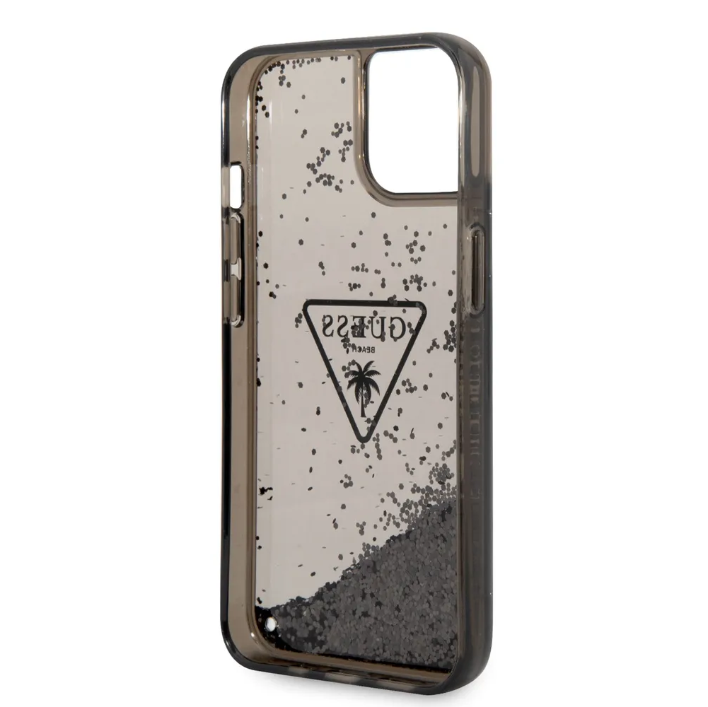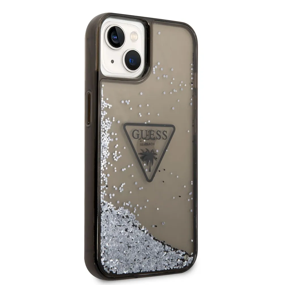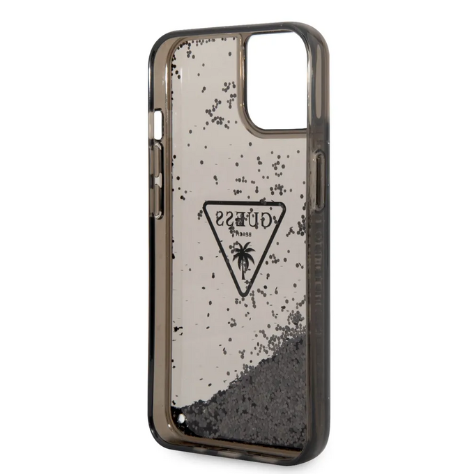 Guess для iPhone 14 Plus чехол Liquid Glitter Triangle logo Hard Translucent Black