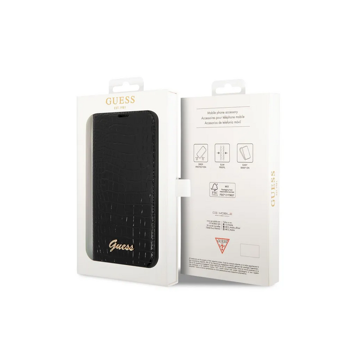 Guess для iPhone 14 Plus чехол PU Croco Metal logo Booktype Black