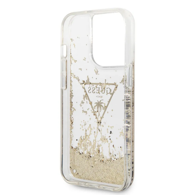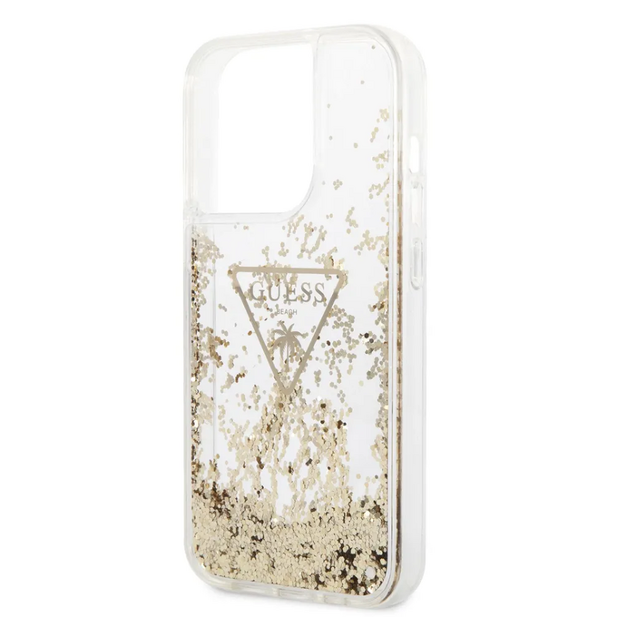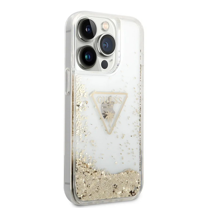 Guess для iPhone 14 Pro чехол Liquid Glitter Triangle logo Hard Transparent