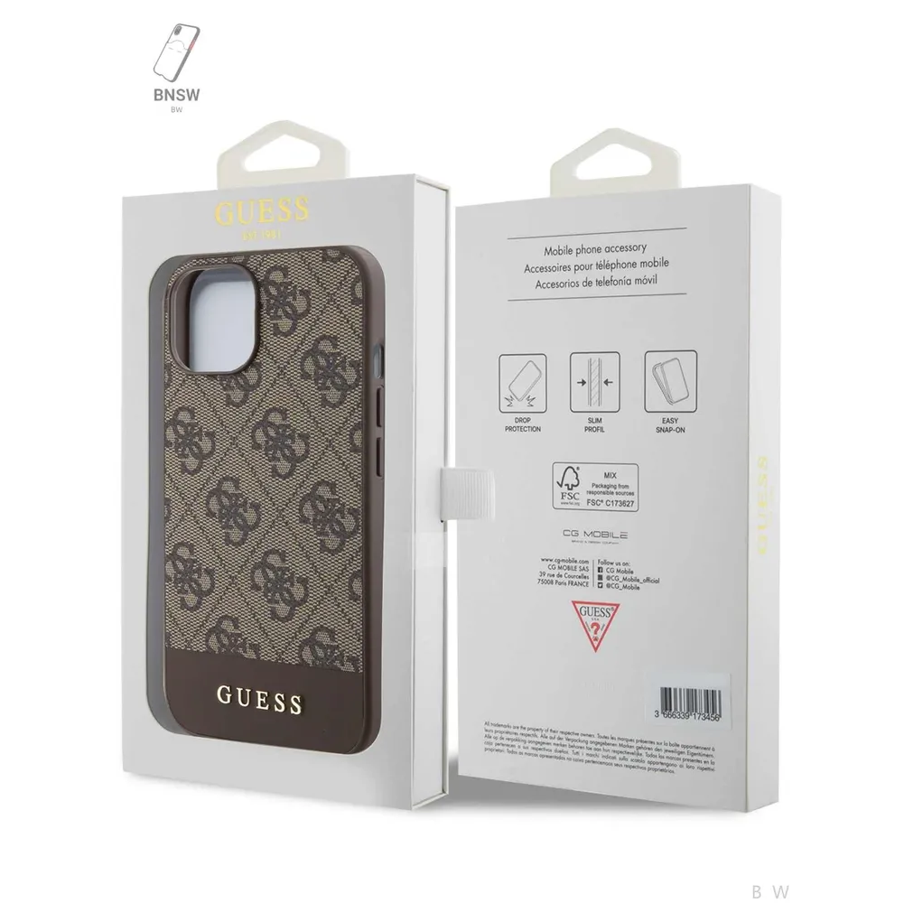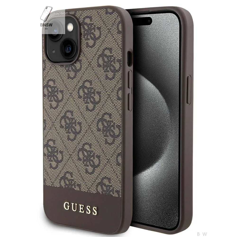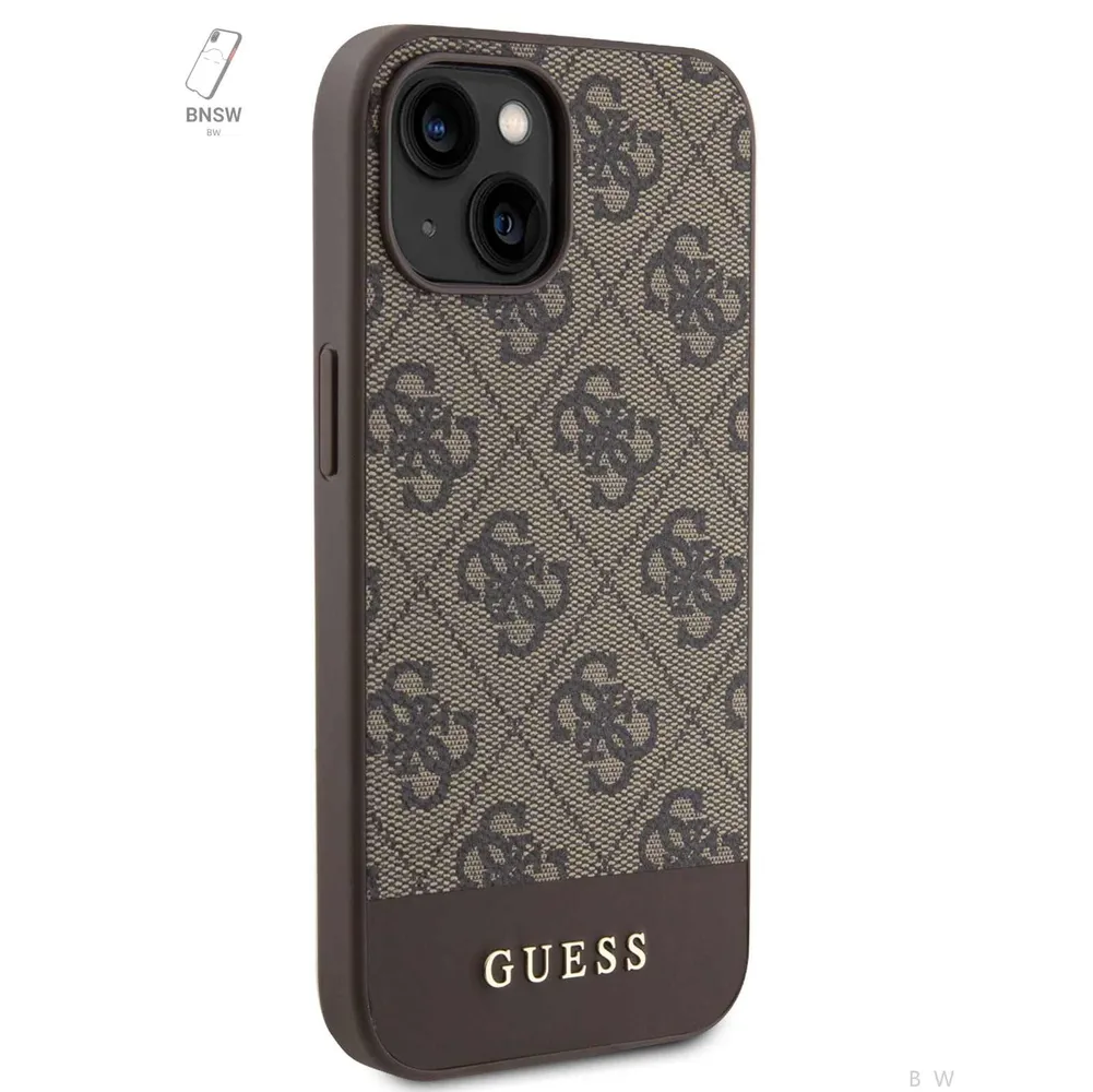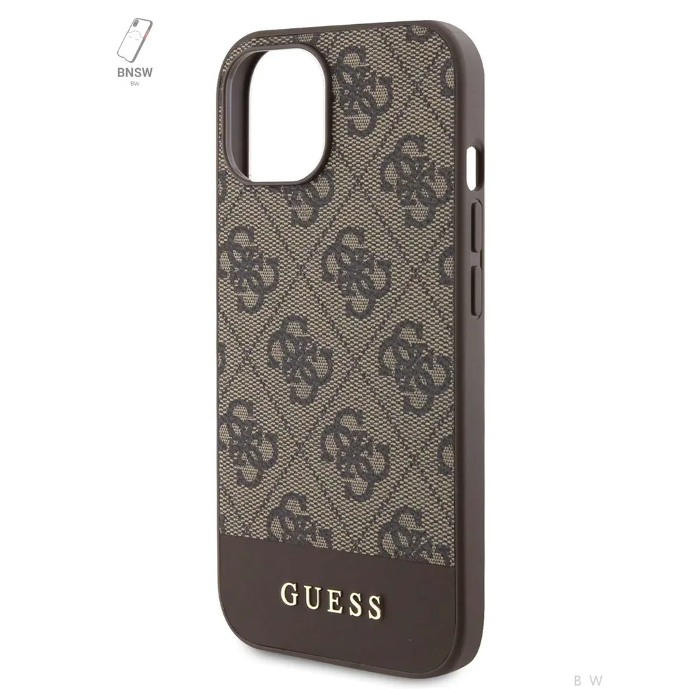 Guess для iPhone 15 чехол PU 4G Bottom stripe Metal logo Hard Brown