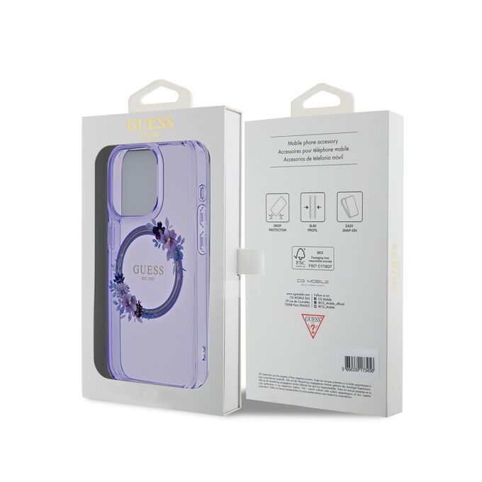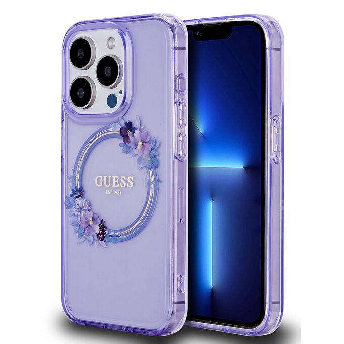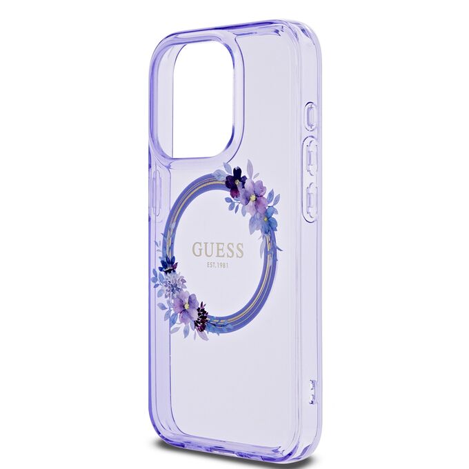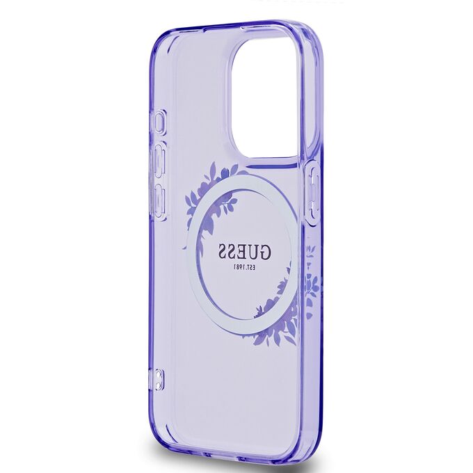Guess для iPhone 16 Pro чехол PC/TPU Real Dried Flowers Fixed Glitters Hard Purple (MagSafe)
