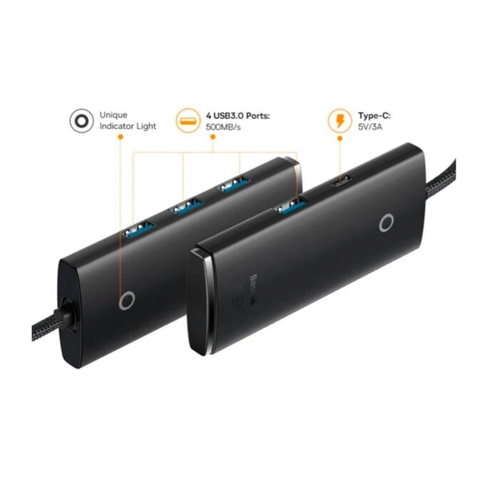 Хаб Baseus Lite Series 4-Port USB-A (USB-A to USB 3.0*4) 25cm Black (WKQX030001)